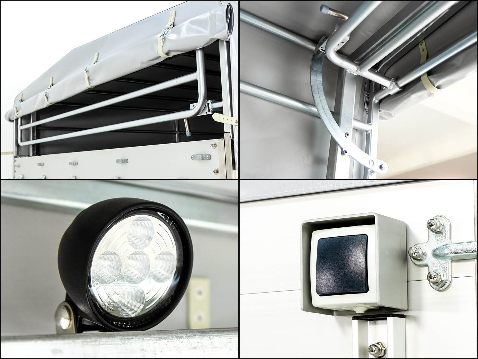 • Innenstrahler LED hinten im Planengestell mit Schalter