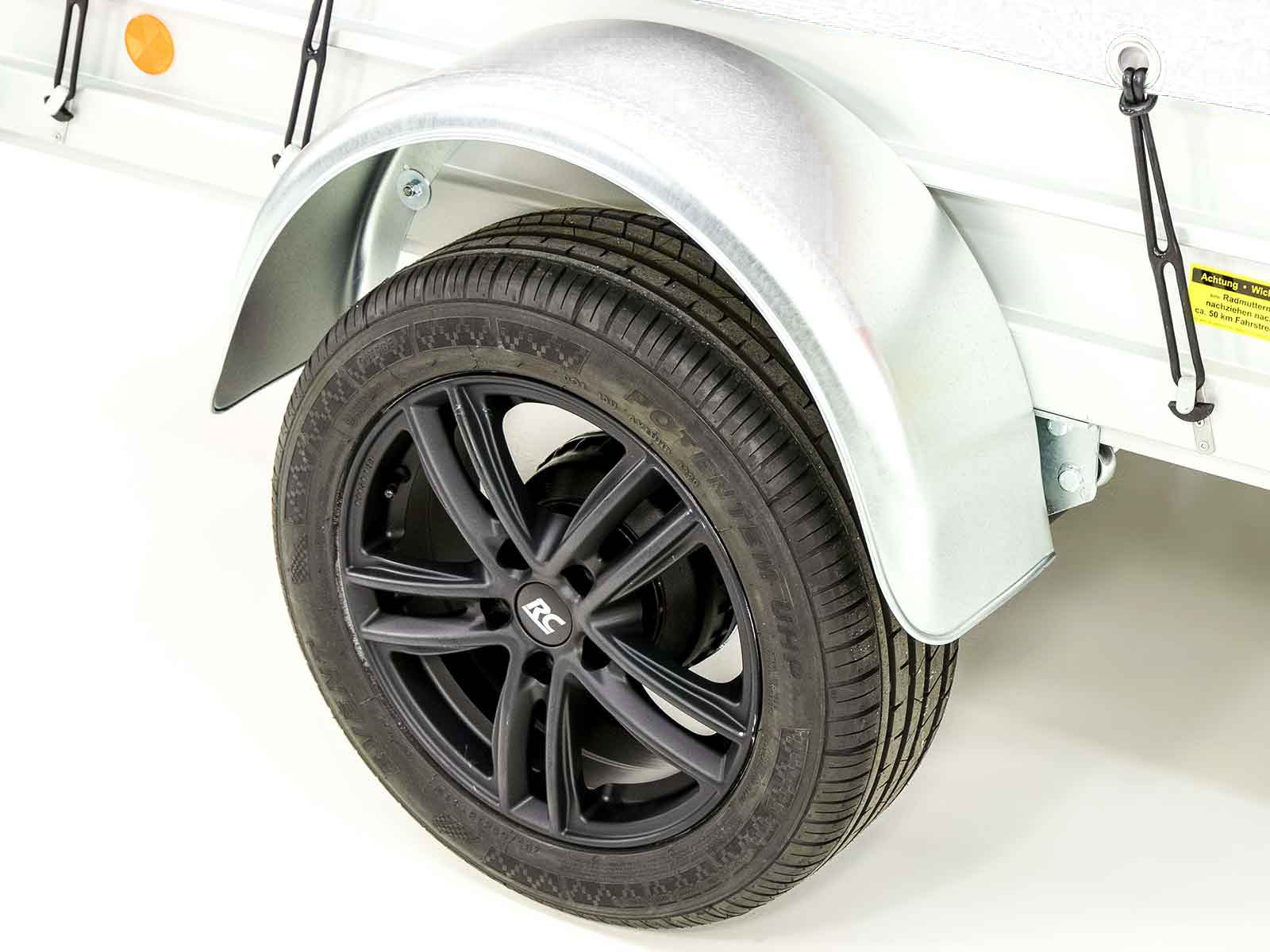 | Aufhängung | Gummifederachse mit Stoßdämpfern (100 km/h Zulassung) |