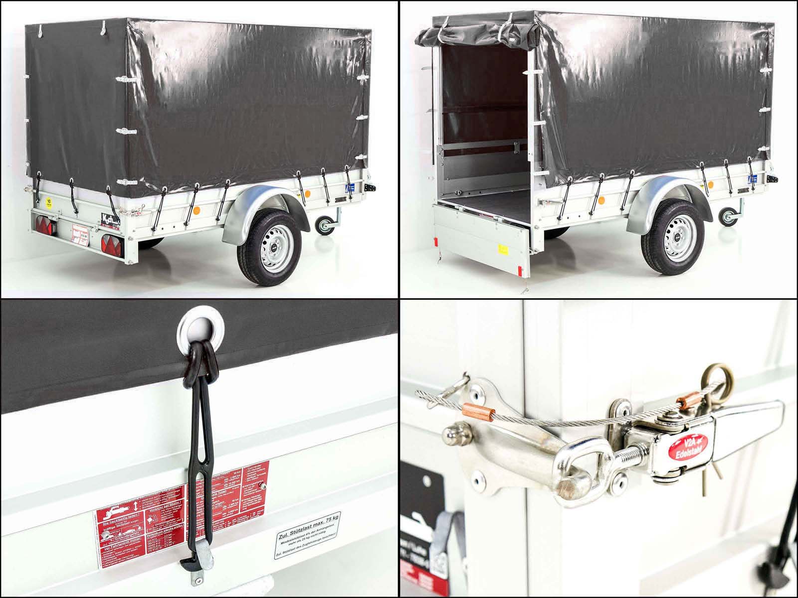 Anhänger mit Plane 125x250cm 750kg | Typ U4 | Hochplane 140 cm Profi | Anthrazit-Neu
