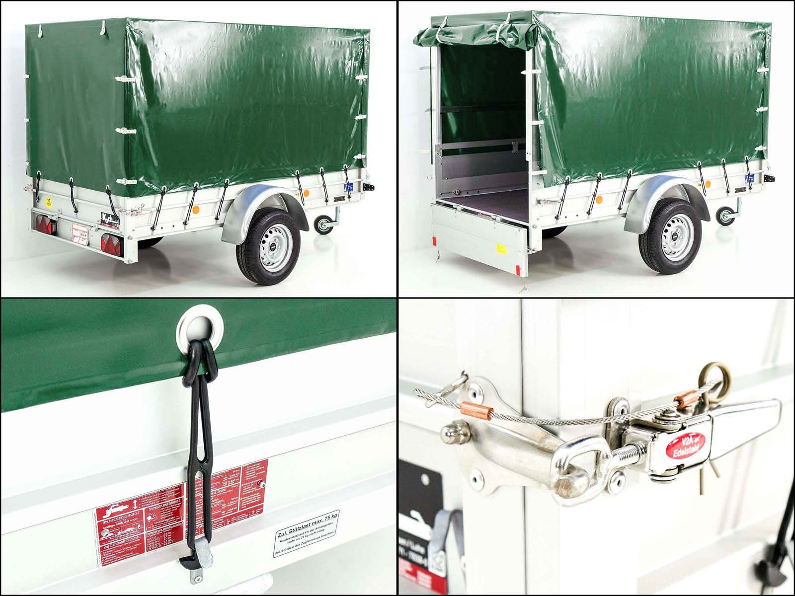 Anhänger mit Plane 125x250cm 750kg | Typ U4 | Hochplane 140 cm Profi | Grün-Neu