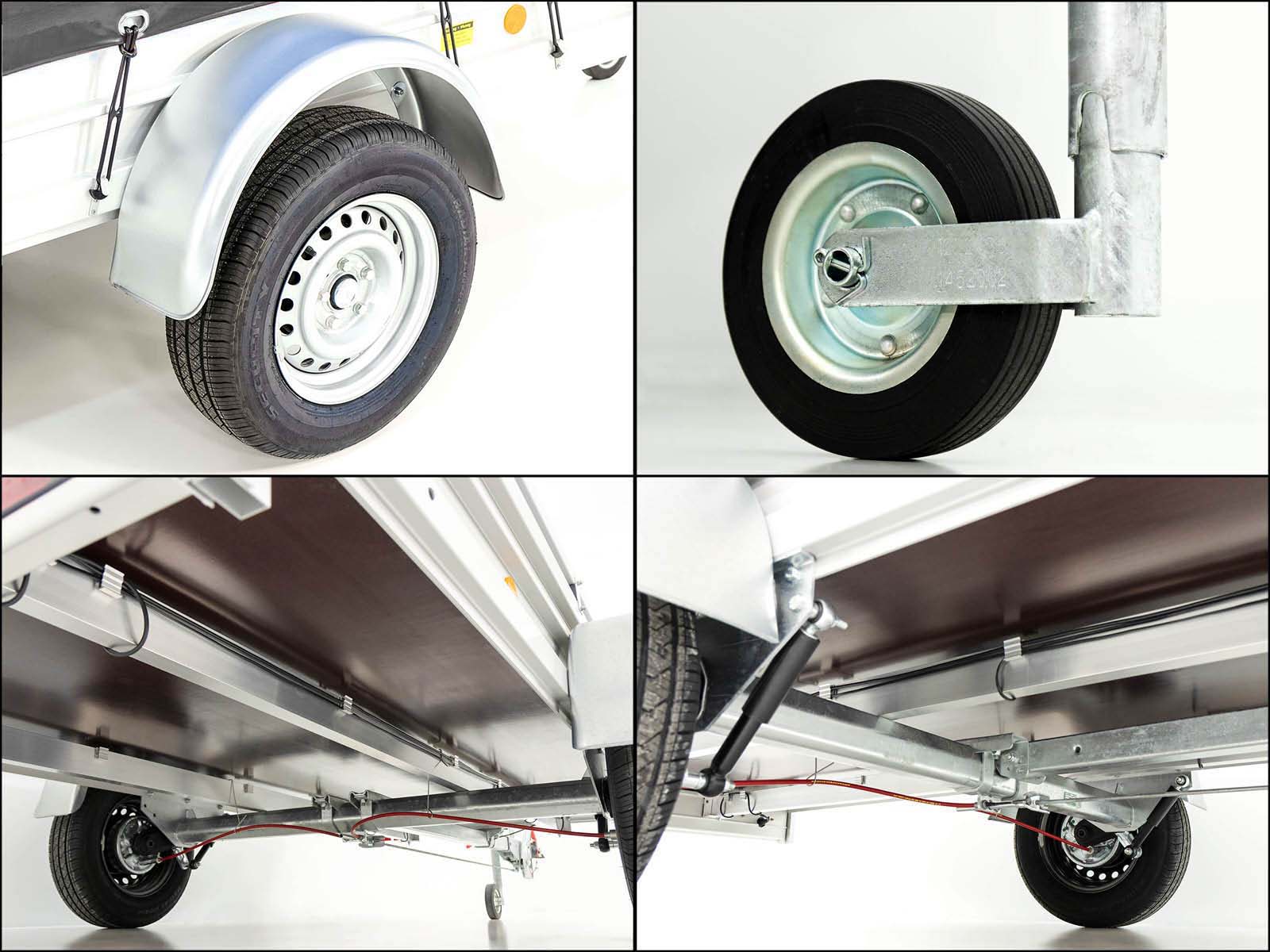 Der Anhänger mit Plane Typ 7.13 in Anthrazit ist ein leichter Aluminiumanhänger mit einer Hochplane von 160 cm. Er bietet eine hohe Ladefläche (150 x 300 cm) und eine Nutzlast von ca. 1.020 kg. Der Anhänger ist mit einer robusten Aluminium- und Edelstahlkonstruktion ausgestattet und bietet 10 Jahre Garantie.