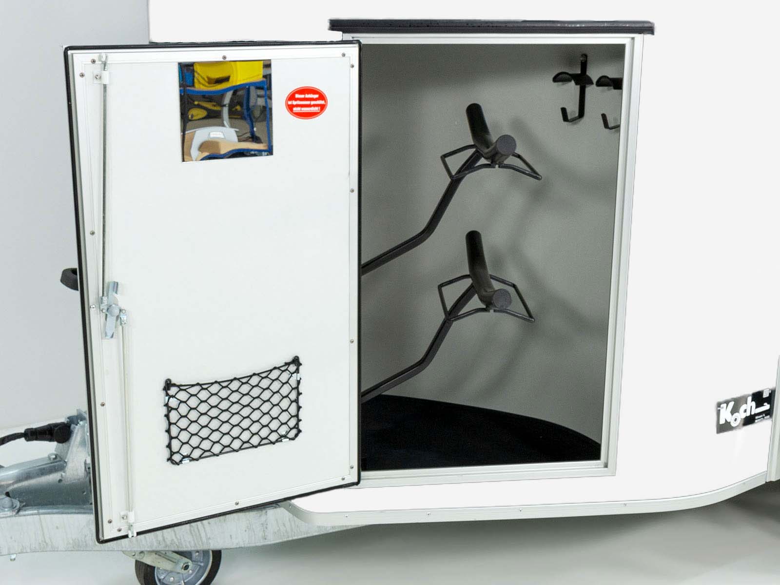 - Heckklappe aus Aluminium, dreh- und schwenkbar mit Gummibelag