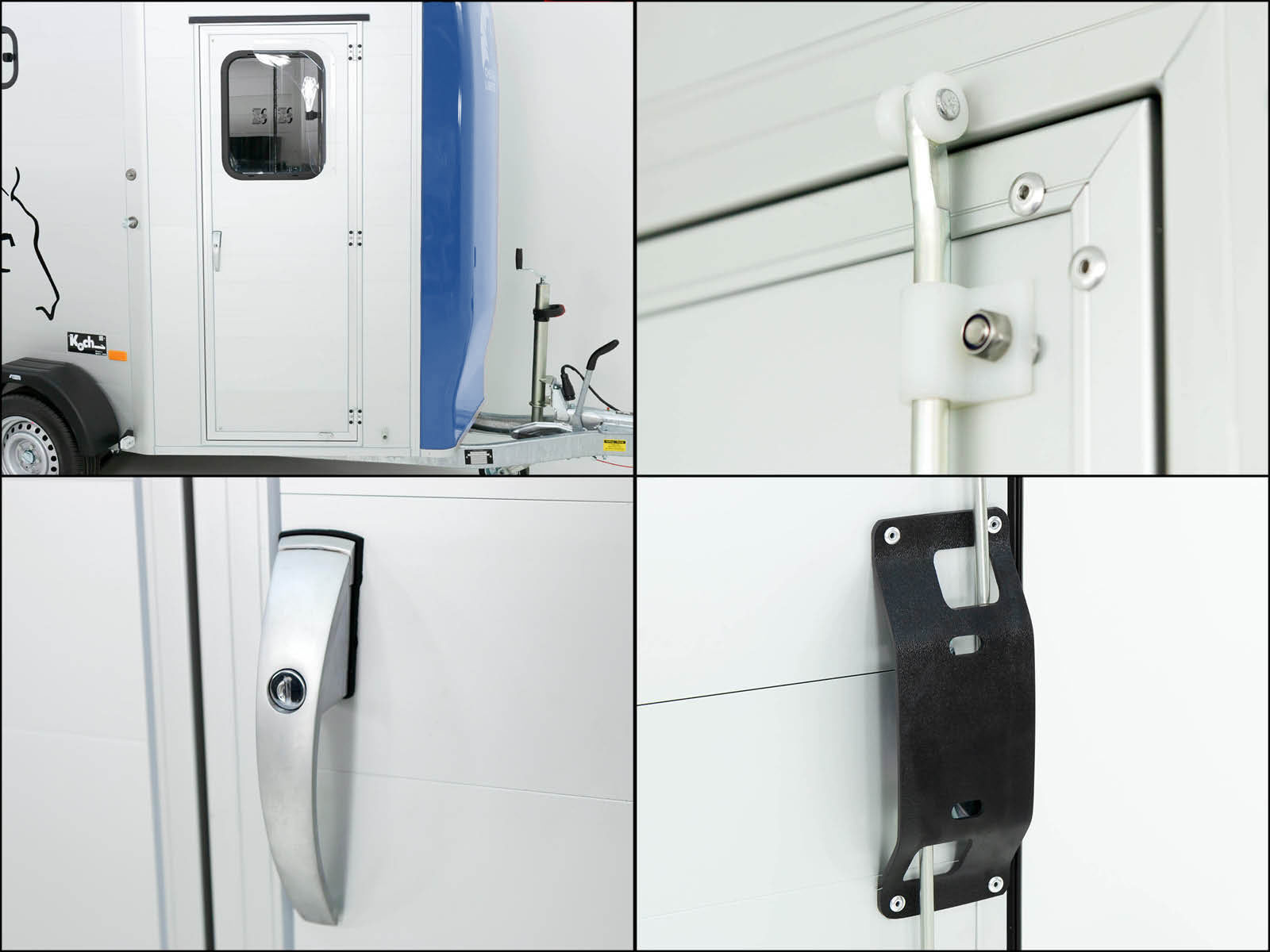 - Heckklappe aus Aluminium, dreh- und schwenkbar mit Gummibelag
