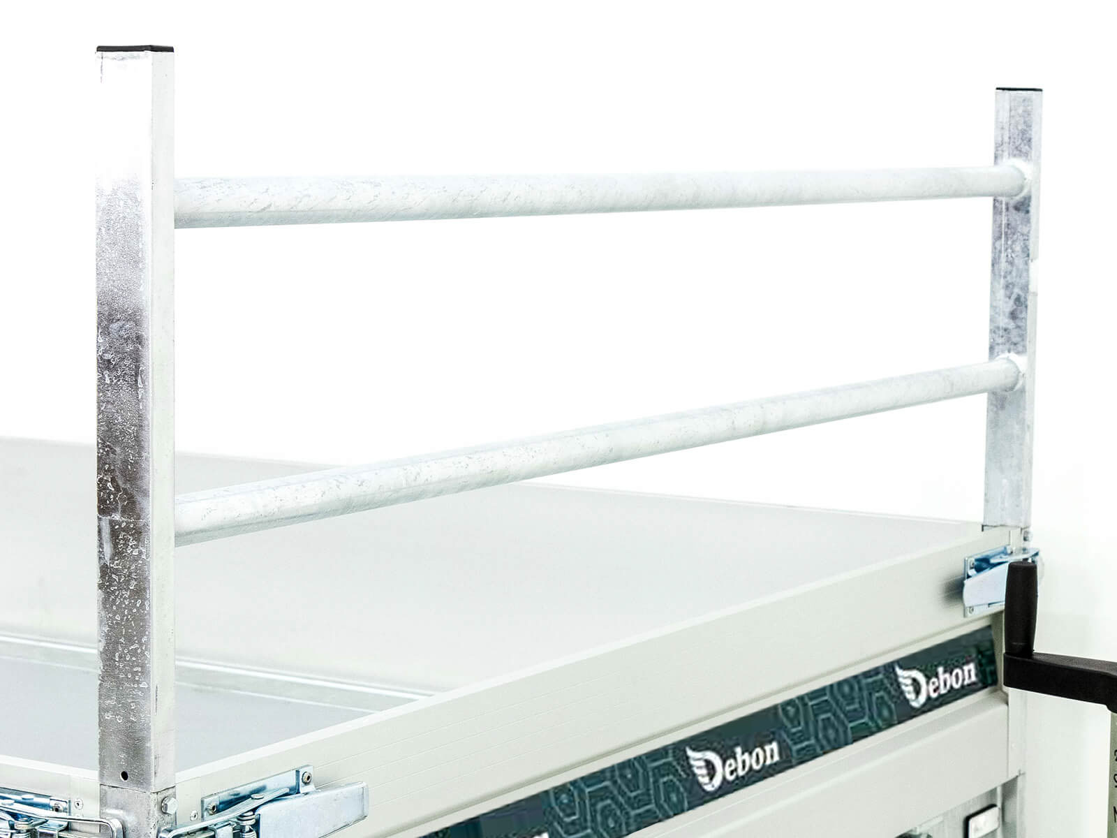 • Aluminium-Bordwände (350 mm), klappbar und abnehmbar.