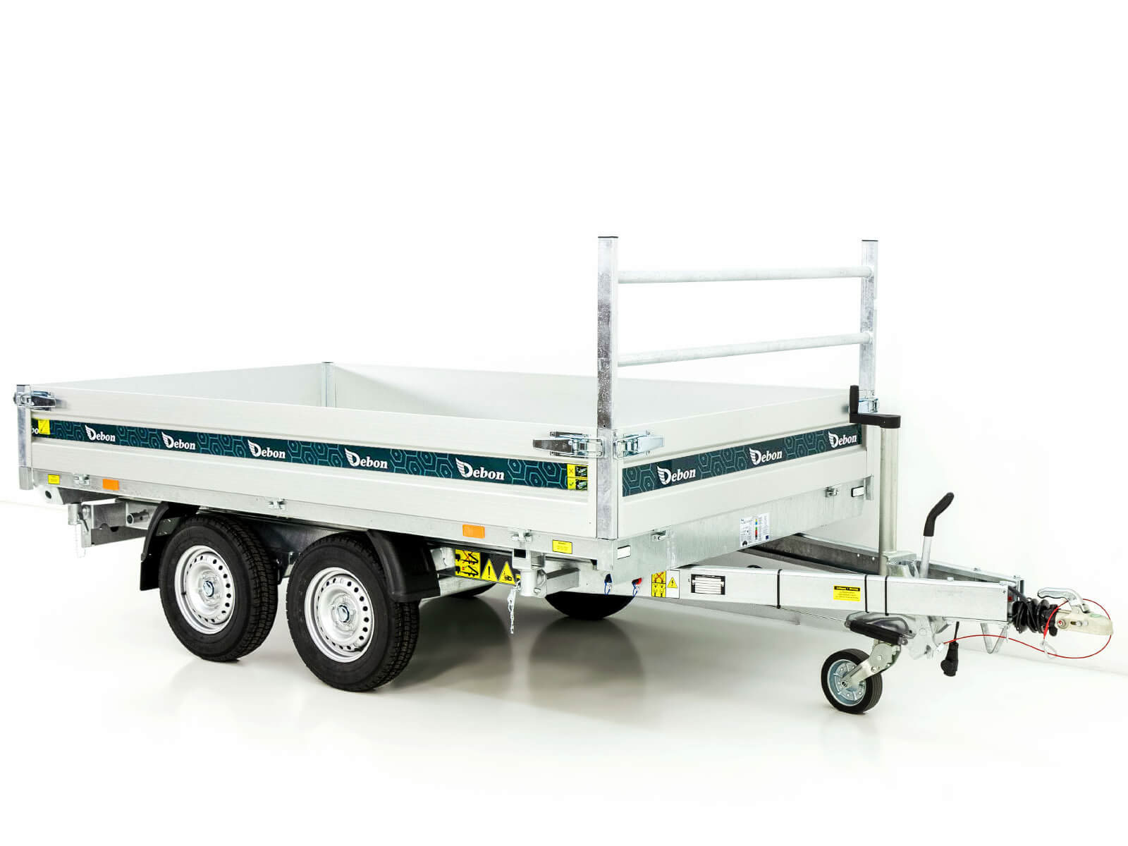 Der Dreiseitenkipper 180x306cm von Debon bietet maximale Flexibilität mit einer E-Hydraulikpumpe und einer hohen Nutzlast von bis zu 1920 kg.