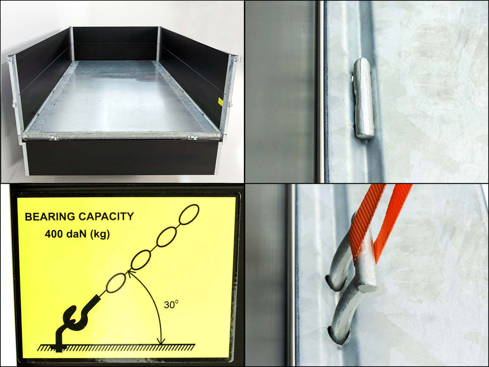 • Bordwände : Aluminium 350 mm, schwarz, klappbar und abnehmbar