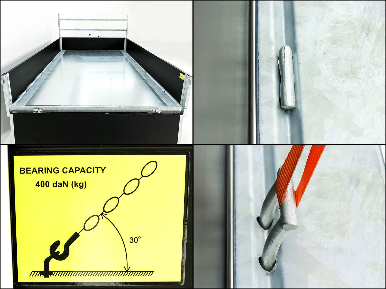 • Heckklappe : H-Gestell, verzinkter Stahl, montierbar und abnehmbar