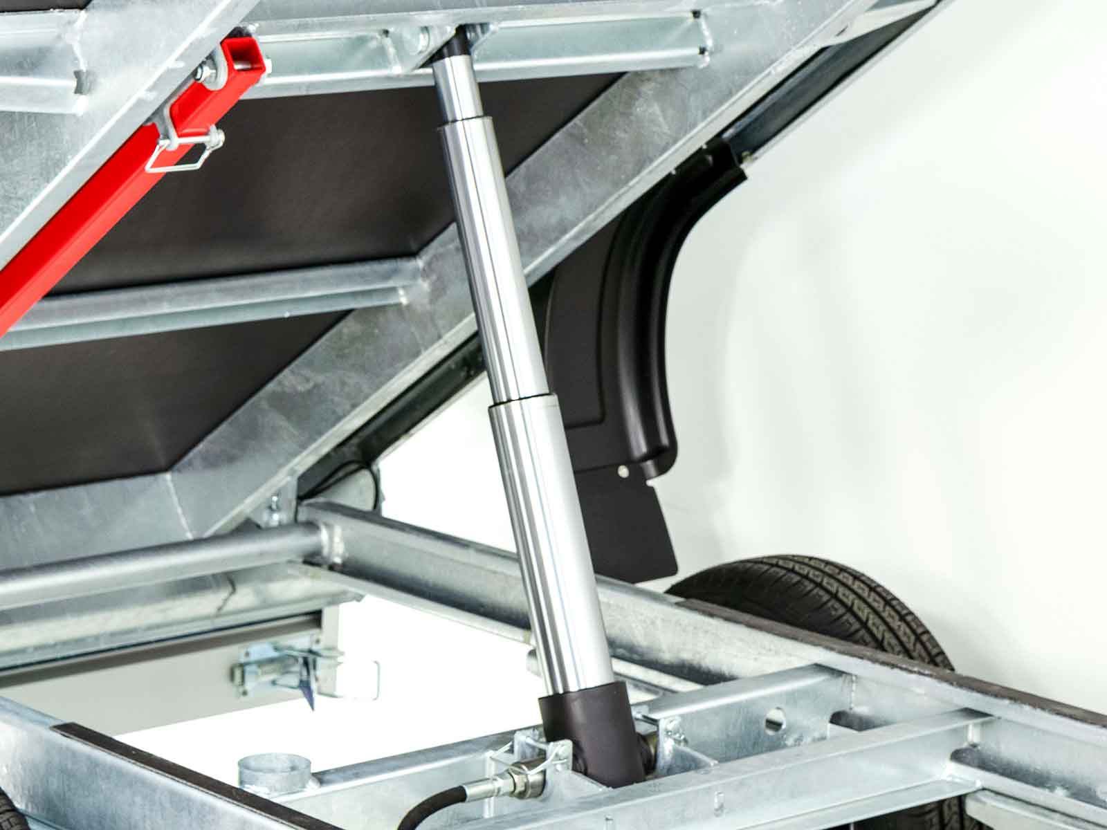Der Debon Heckkipper 155x305cm 2,0t mit E-Pumpe und Bordwandaufsatz (BWA) eignet sich ideal für vielseitige Transportaufgaben.