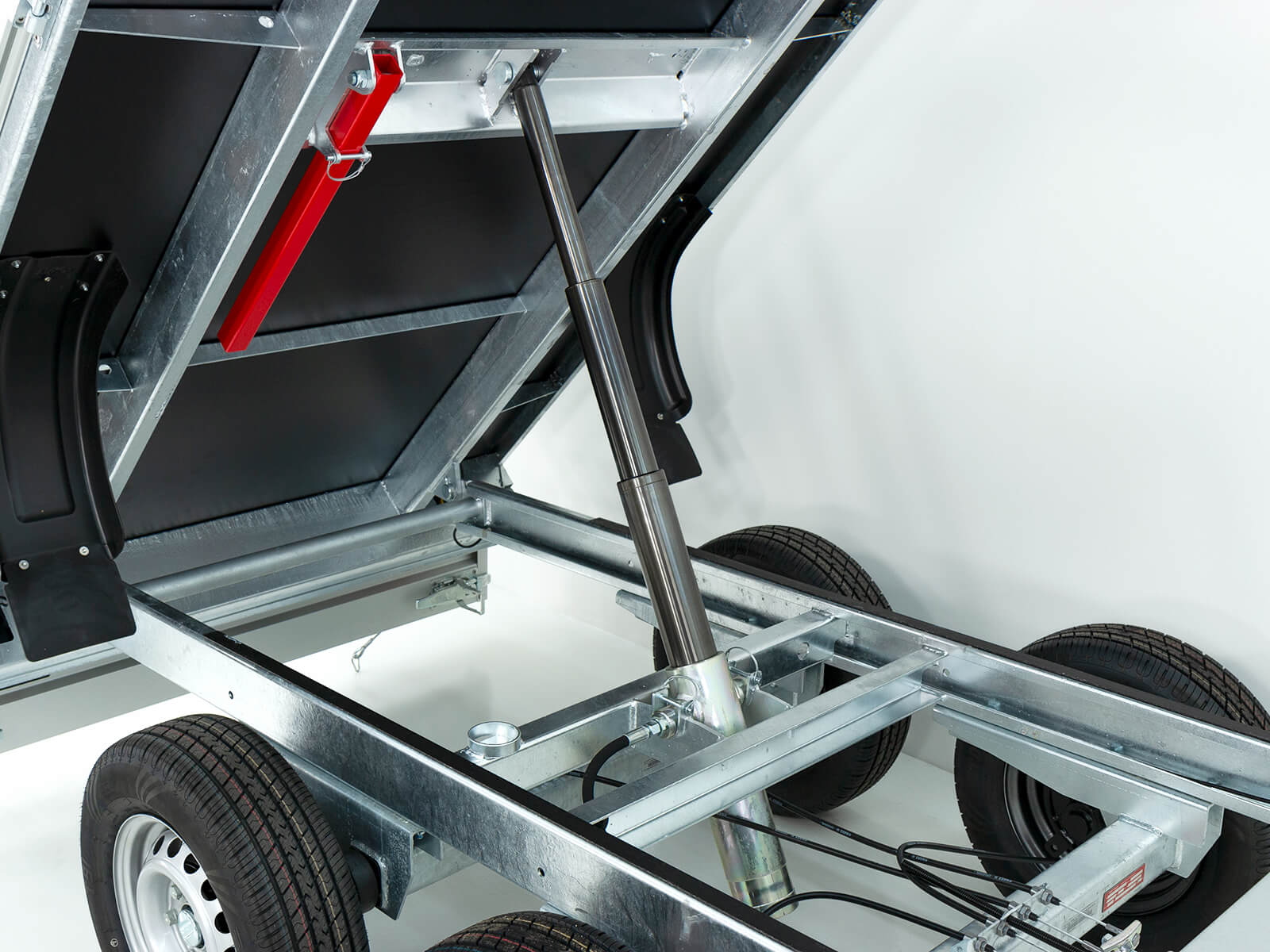 Der Debon Heckkipper 155x305cm 2,0t mit E-Pumpe bietet vielseitige Einsatzmöglichkeiten durch robuste Verarbeitung und praktische Funktionen.