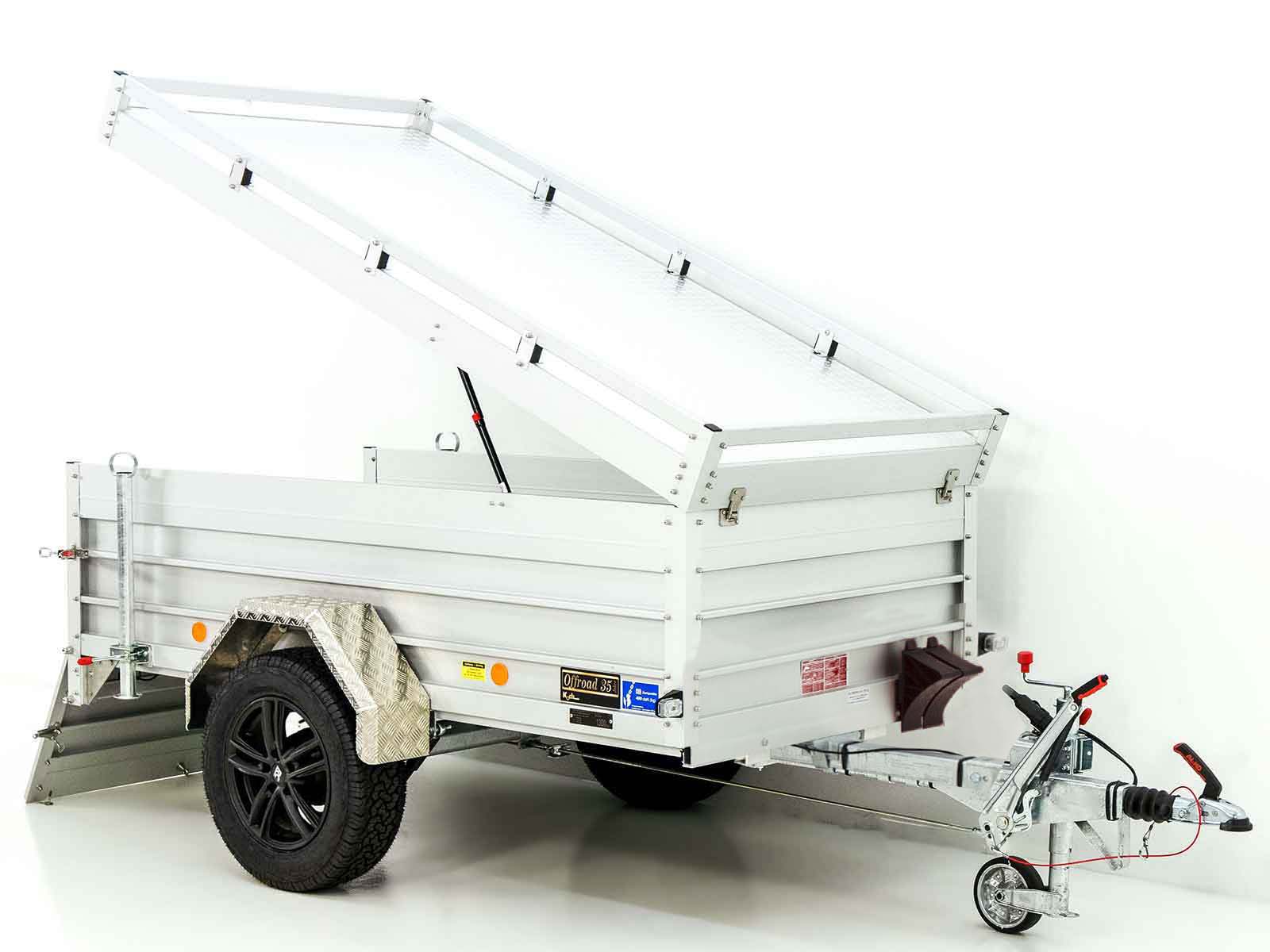 Der Deckelanhänger „CROSSLINE“ Typ 4.13 hat ein Lademaß von 125 x 250 x 65 cm und ein zulässiges Gesamtgewicht von 1300 kg mit einer Nutzlast von 1060 kg. Dieser leichte Aluminium-Anhänger bietet ein ausgezeichnetes Preis-Leistungs-Verhältnis und wird mit 10 Jahren Garantie geliefert. Hergestellt in Deutschland von -Anhängerwerken, einem renommierten Hersteller von Qualitätsanhängern.
