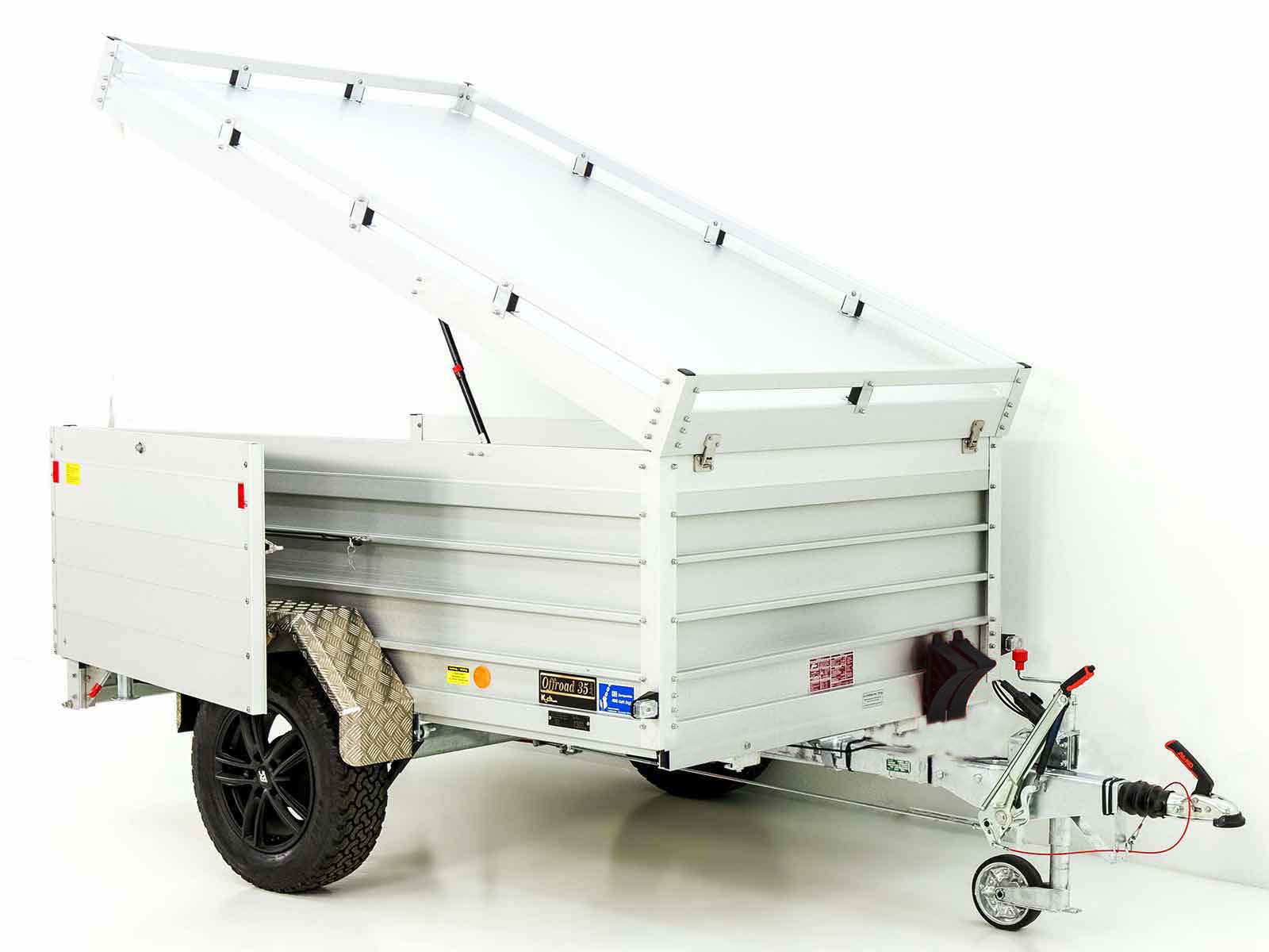 Der Deckelanhänger „CROSSLINE“ bietet ein Lademaß von 150 x 250 x 80 cm und ein zulässiges Gesamtgewicht von 1300 kg bei einer Nutzlast von 1040 kg. Der Aluminium-Anhänger überzeugt durch seine robuste Bauweise und 10 Jahre Garantie. Er wird von -Anhängerwerken, einem führenden Hersteller von Qualitätsanhängern, in Deutschland gefertigt.