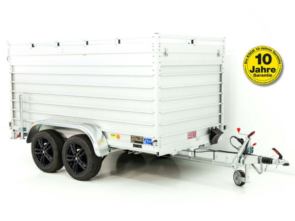 Die 125 cm hohe Plane bietet zusätzlichen Schutz für empfindliche Güter während des Transports. Die 10 Jahre Garantie und die einzigartigen Merkmale wie doppelwandige Aluminium-Bordwände und Edelstahlverschlüsse sorgen für eine lange Lebensdauer und hohe Sicherheit. Ausgestattet mit 16 Zoll Rädern und Heckstützen ist dieser Anhänger ein vielseitiges Transportmittel für jeden Einsatz.