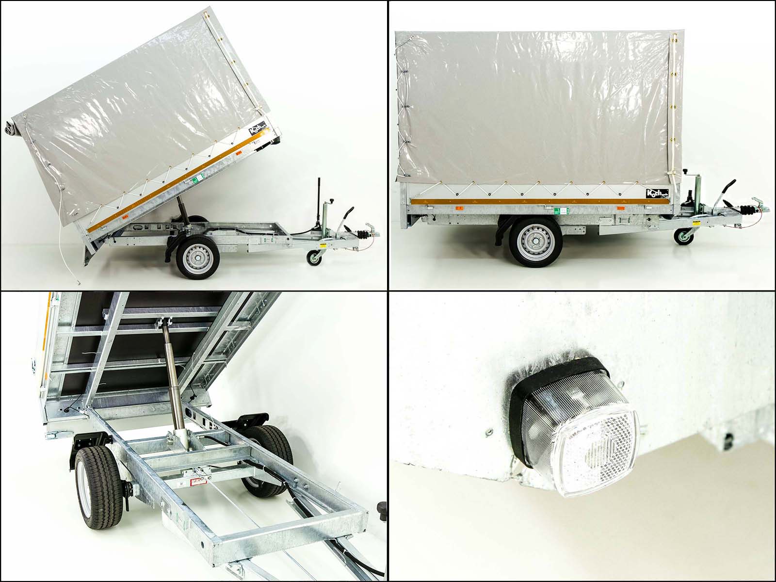 Dieser Eduard Heckkipper ist mit einer Handpumpe und einer robusten Hochplane von 160 cm ausgestattet. Ideal für leichtere Lasten mit einer maximalen Nutzlast von 1.044 kg und geeignet für den Transport von unterschiedlichsten Materialien.