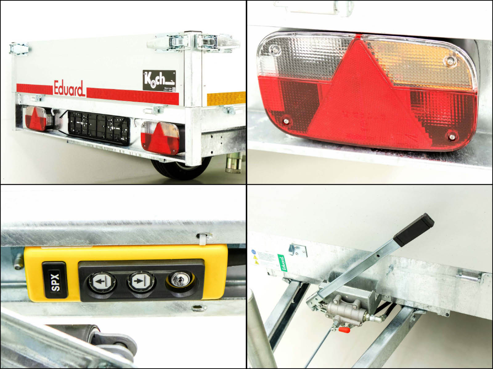 Dieser Eduard Heckkipper bietet ebenfalls eine E-Hydraulikpumpe und eine Not-Handpumpe sowie eine Hochplane von 160 cm. Mit einer maximalen Nutzlast von 1.454 kg und einem Gesamtgewicht von 1.800 kg ist er für mittlere bis schwere Lasten bestens geeignet.