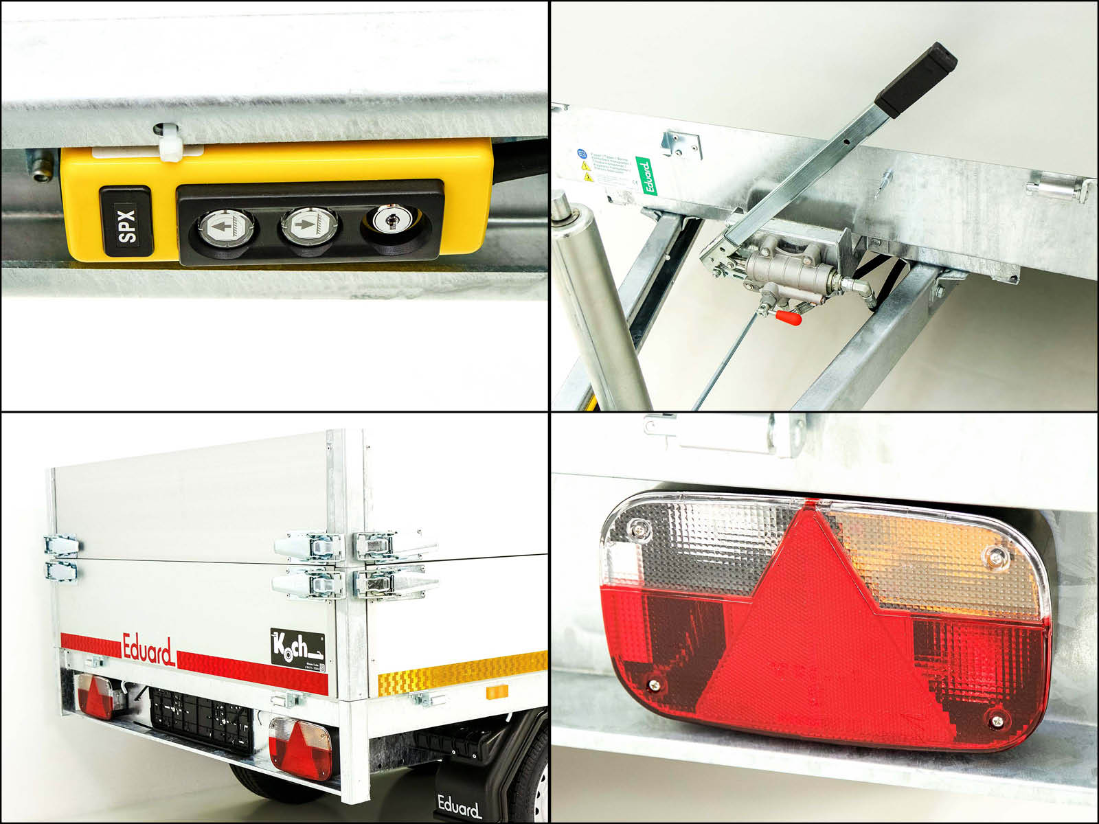 Dieser Eduard Heckkipper bietet eine praktische Kombination aus E-Hydraulik- und Handpumpe, ideal für mittelgroße Transportaufgaben. Mit einer Nutzlast von 1.388 kg ist er vielseitig einsetzbar und besonders robust.