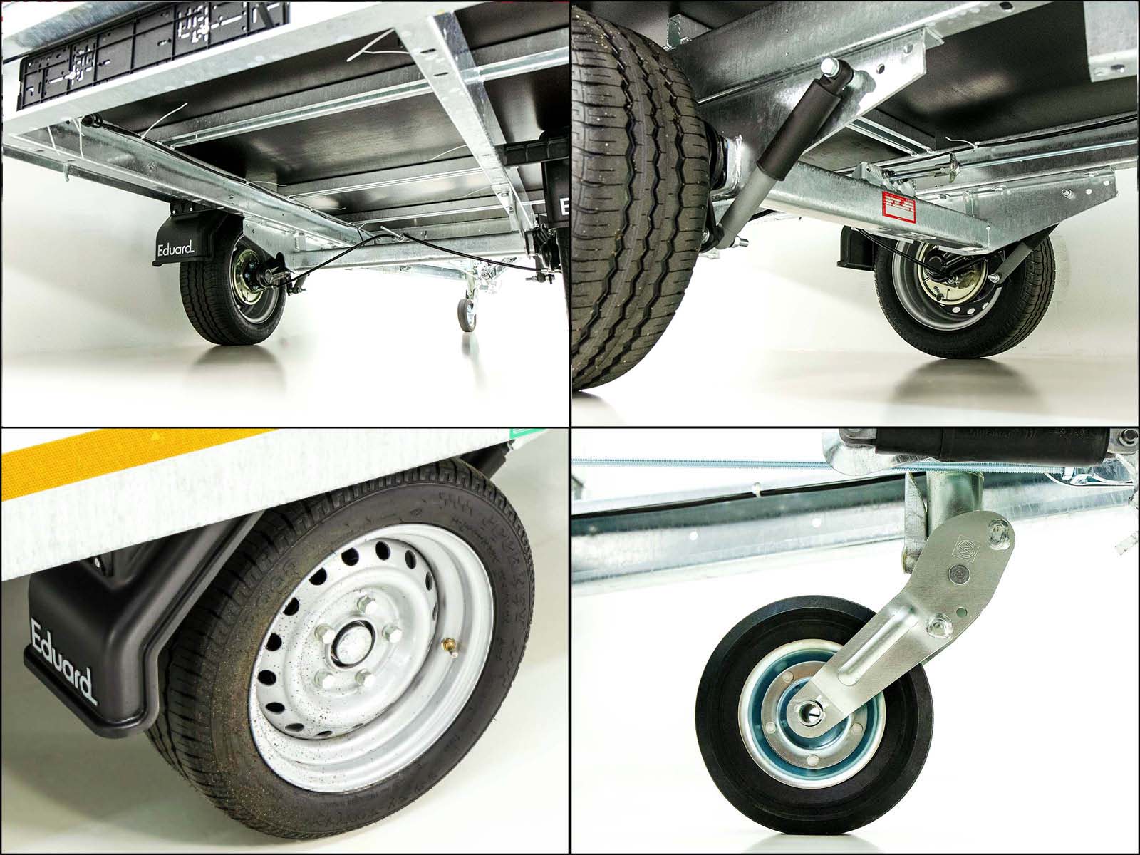 Der Eduard Hochlader Anhänger 3016 GE bietet viel Platz mit einem Laderaum von 160×311 cm und einer zulässigen Gesamtlast von bis zu 1,5 Tonnen. Der Anhänger ist mit einem feuerverzinkten Stahlrahmen, klappbaren und abnehmbaren Aluminium-Bordwänden (300 mm hoch) sowie 10 Zurrösen für eine sichere Ladungssicherung ausgestattet. Die Gummifederachse und das wartungsfreie Fahrwerk sorgen für eine ruhige Fahrt. Mit einer Auflaufbremse, Rückfahrautomatik und einem Automatik-Stützrad ist dieser Anhänger sowohl für den gewerblichen als auch den privaten Gebrauch bestens geeignet. Eine 100 km/h Zulassung ist als Zubehör erhältlich.