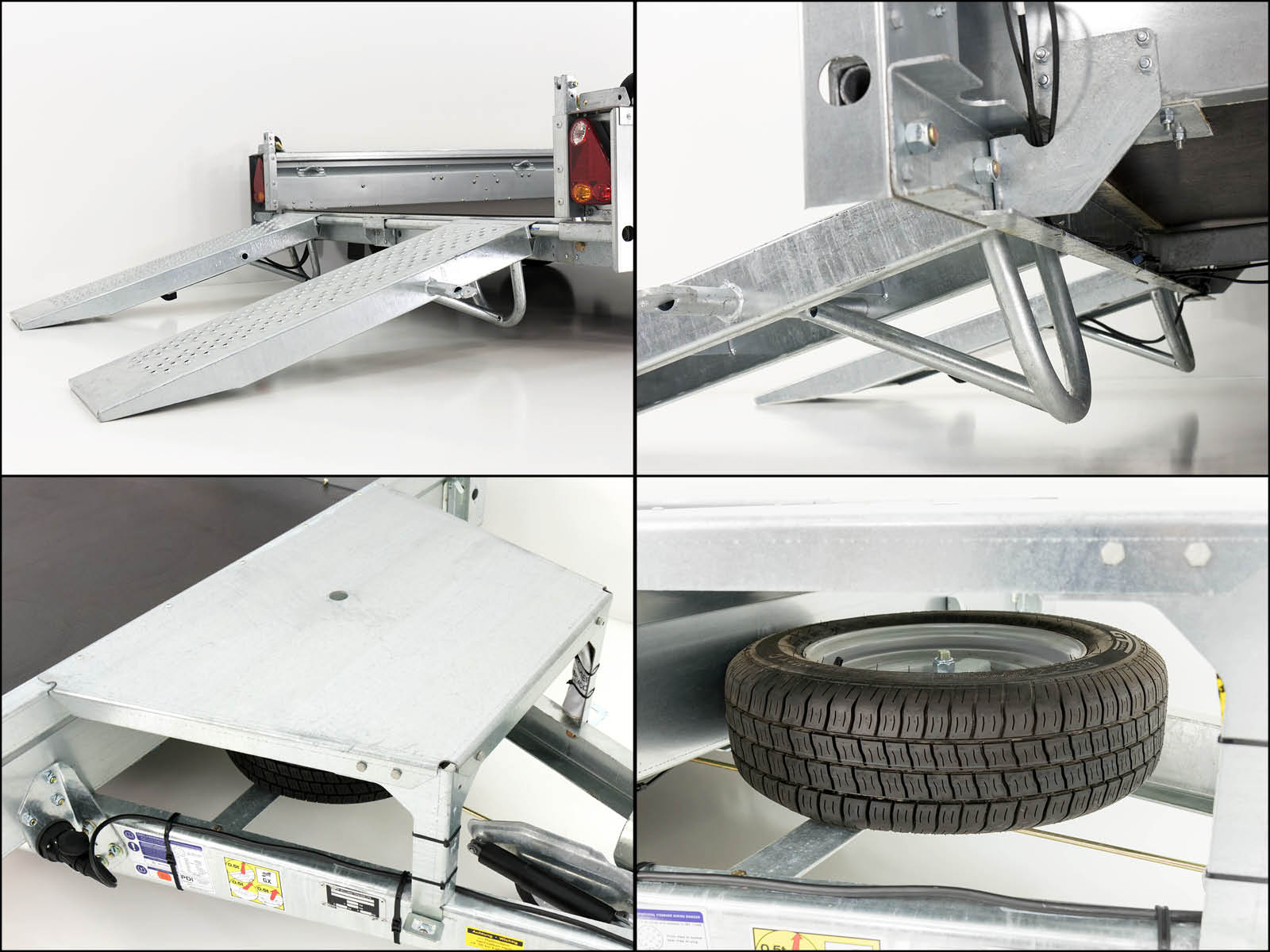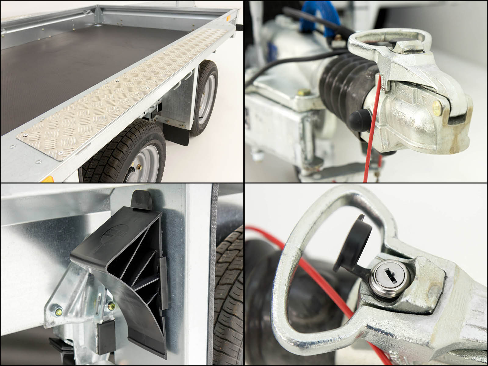 • Fahrwerk: Blattfedern, V-Deichsel mit Zugkugelkupplung, Schwerlaststützrad