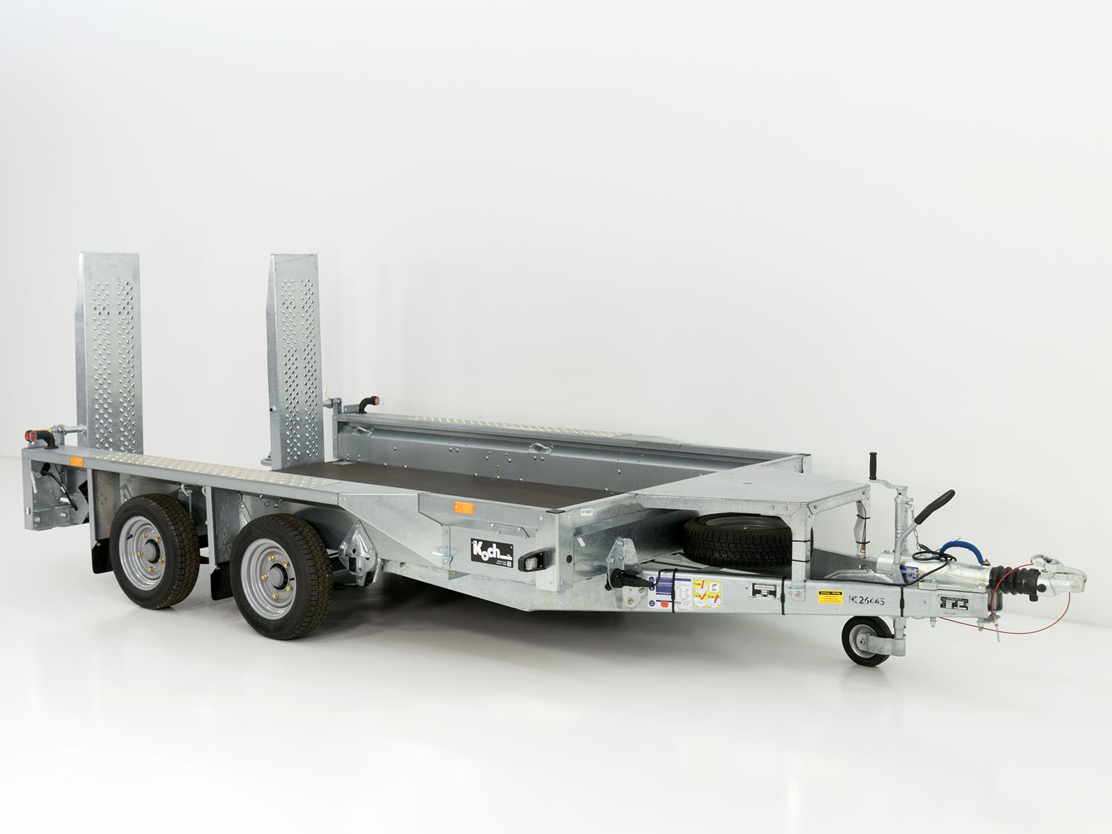 Der Ifor Williams GX105 HD ist ein robuster Baumaschinenanhänger mit einem Stahlrahmen und verzinkten Stahlbordwänden. Mit einer Nutzlast von bis zu 2834 kg eignet sich der Anhänger ideal für den gewerblichen Einsatz, insbesondere für den Transport von Baggern und anderen schweren Maschinen.