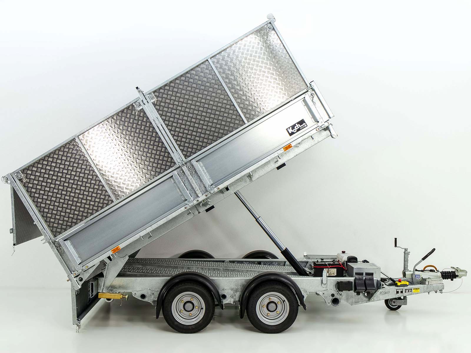 Ein hochwertiger, robuster Heckkipper von Ifor Williams, geeignet für den Transport schwerer Lasten mit einer Nutzlast von bis zu 2.437 kg. Ausgestattet mit einem E-Hydrauliksystem und einem Aluminium-Bordwandaufsatz.
