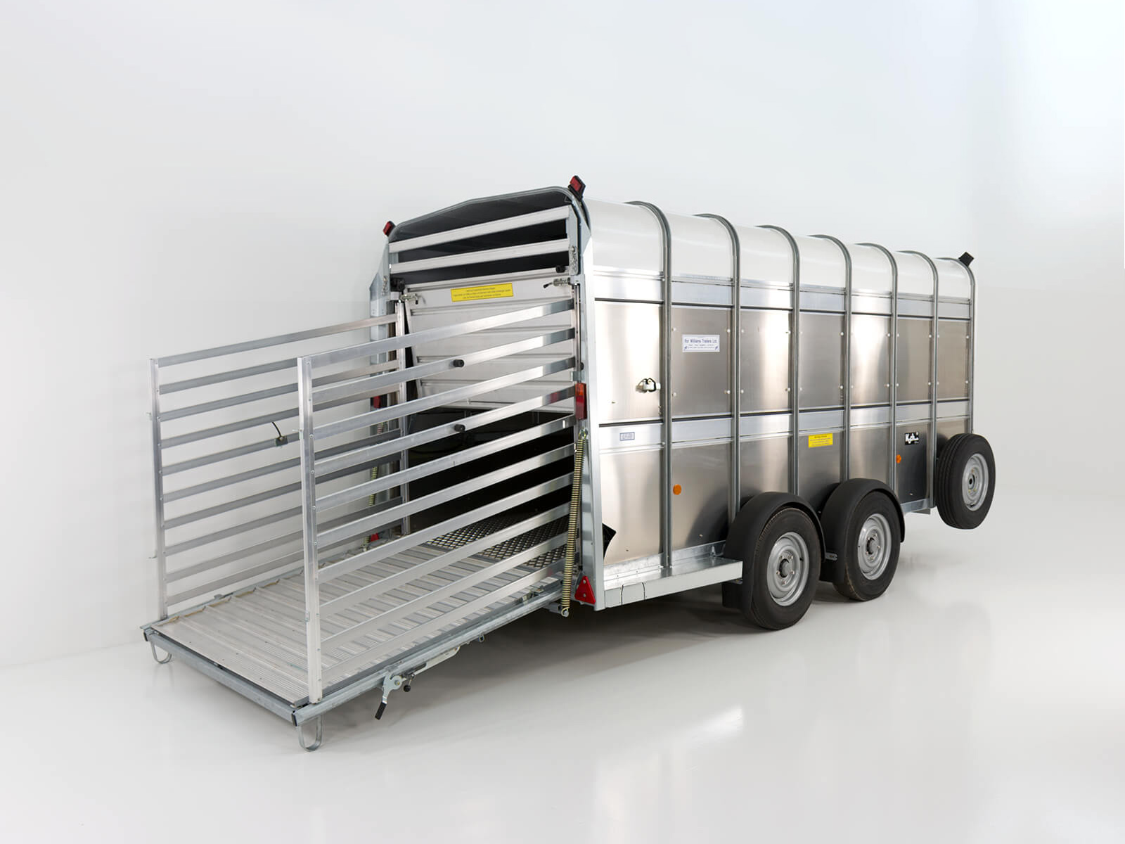 Der Ifor Williams Viehanhänger TA510 14×6 bietet mit seiner großzügigen Innenraumgröße und der Doppelstock-Konzeption eine ideale Lösung für den Transport von Vieh. Er verfügt über EasyLoad™ Rampen- und Klappdecksystem, das das Beladen des Oberdecks deutlich vereinfacht. Das Modell ist mit Lüftungsklappen und einem hitzereflektierenden Dach ausgestattet, was für eine gute Belüftung und angenehme Temperaturen im Inneren sorgt.