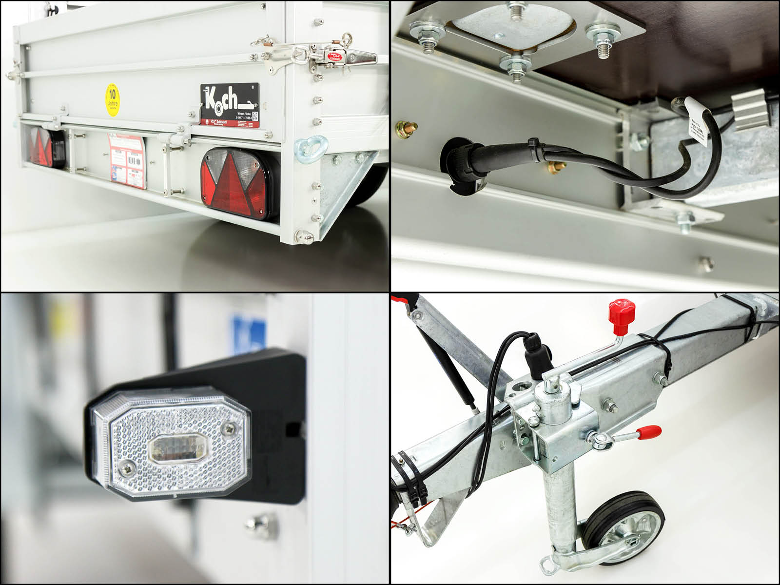 - Elektrik: 12 Volt, 13-poliger Stecker, Nebelleuchte, Rückfahrscheinwerfer