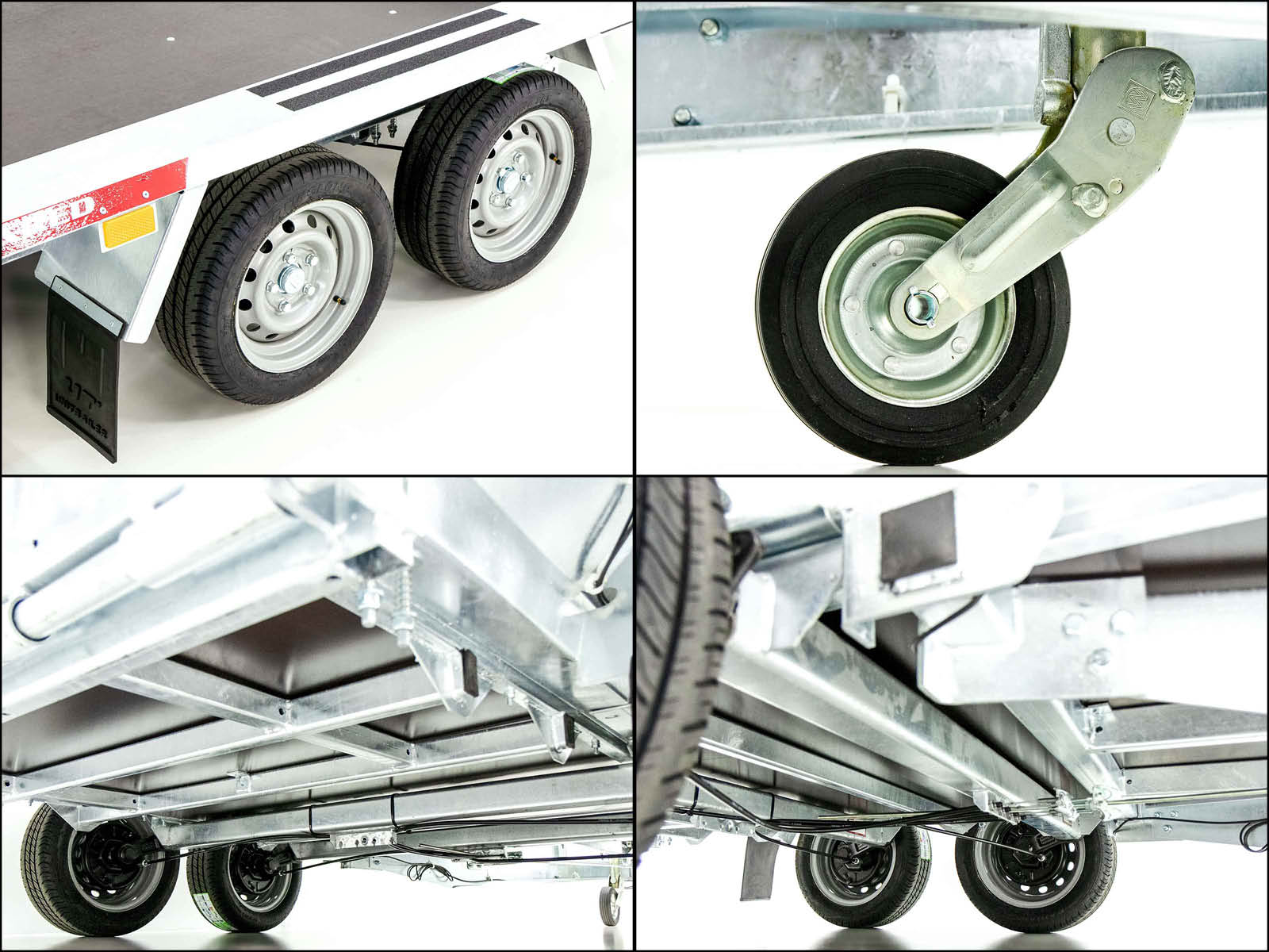 • Fahrwerk: Gummifederachse, V-Deichsel mit Zugkugelkupplung, Automatik-Schwerlaststützrad