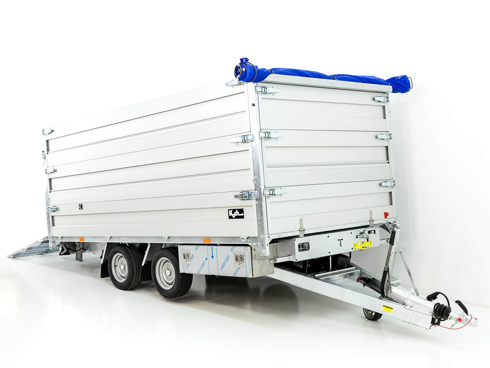 - Maschinen- und Kippanhänger mit ca. 55° Kippwinkel zum Abkippen und ca. 10° Auffahrwinkel
