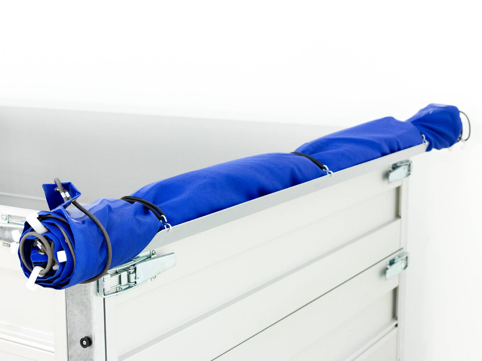 - Inkl. Zubehör: doppelte Aufsatzbordwände (2x 50 cm, vorne und seitlich), verstärkte Flachplane mit Aufrollhilfe und Stauplatz
