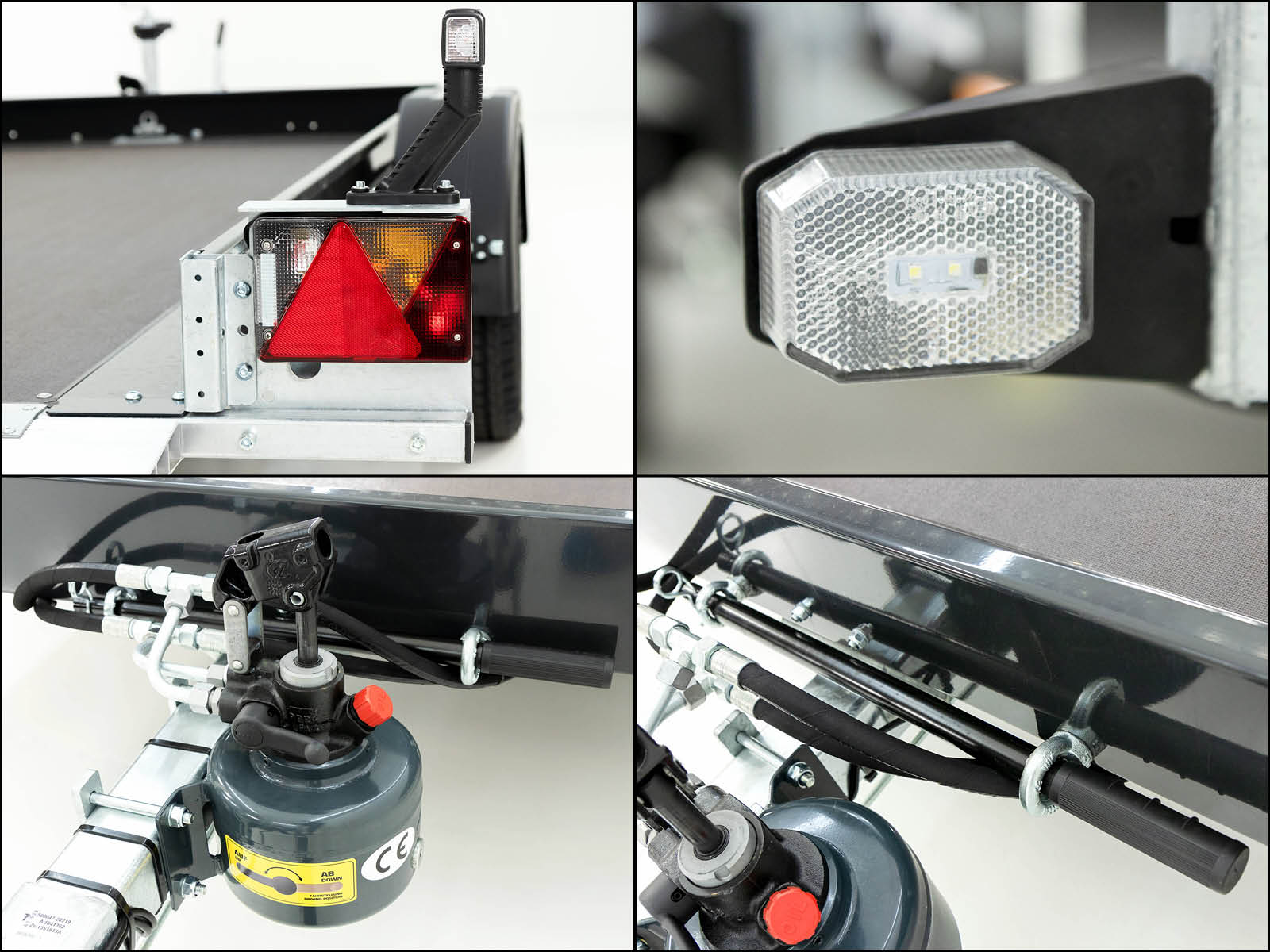 • Ladefläche hydraulisch absenkbar (Handpumpe mit Senkventil)