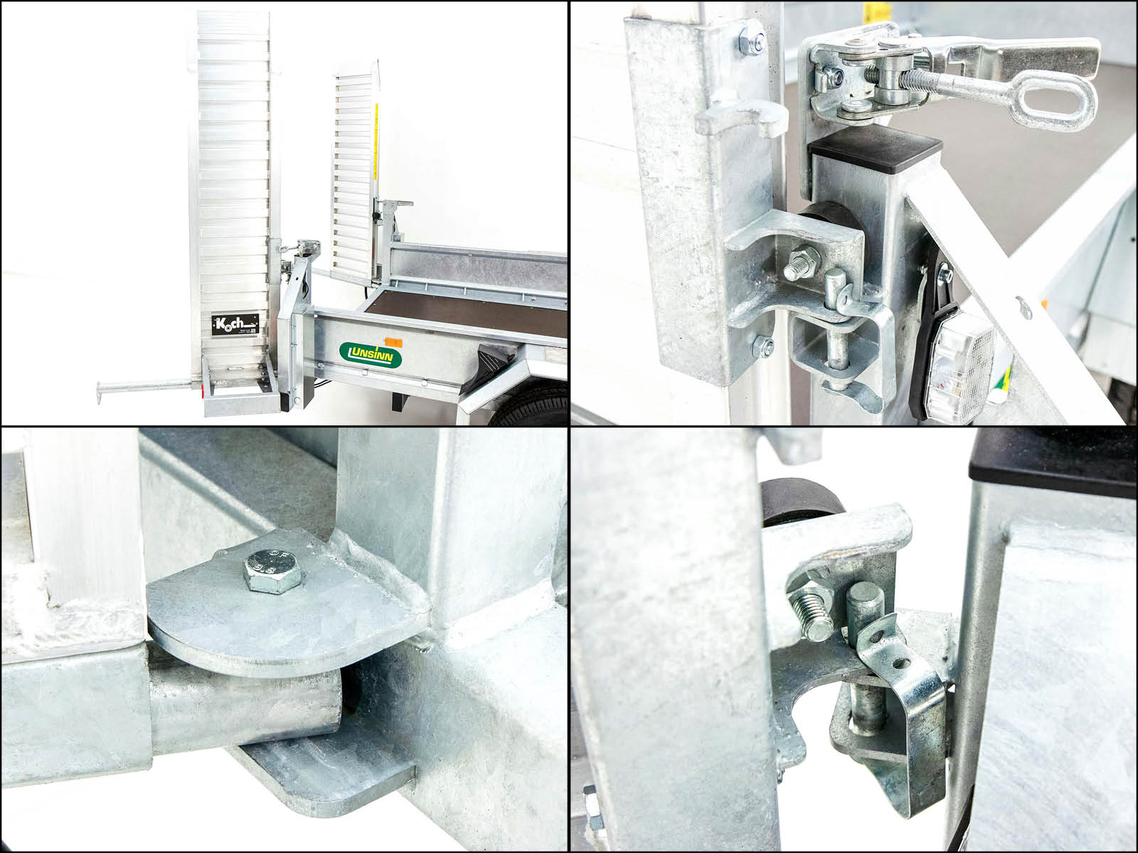 - Fahrwerk: Alko-Achse, V-Deichsel mit Zugkugelkupplung, Automatik-Schwerlaststützrad
