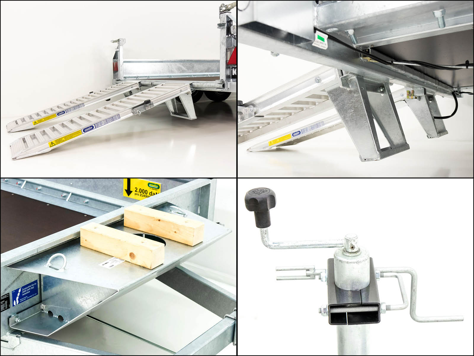 - Rampen: Schwenkbar, mit Zwangsabstützung