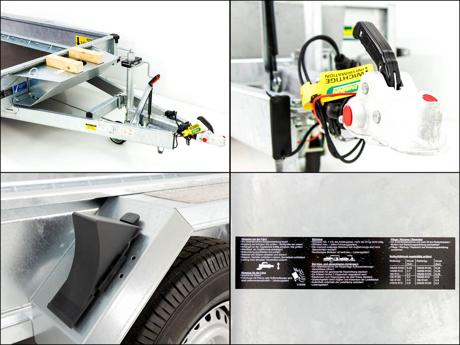 | Besonderheiten | Verschweißter Gitterrohrrahmen, komplett Tauchbad-Feuerverzinkt; Rampen verschieb- und schwenkbar mit Zwangsbelüftung; 10 Paar Ladungssicherungspunkte, belastbar pro Zurrpunkt 2000 kg; Stabile begehbare Kotflügel mit Aluriffelblech |