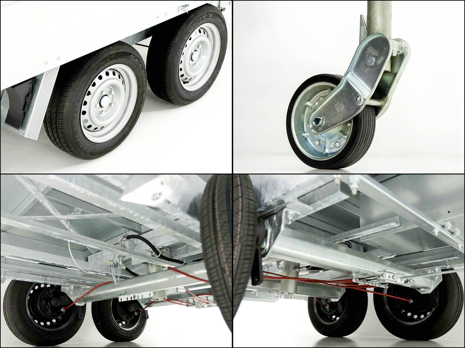 • Fahrwerk : Gummifederachse mit Einzelradfederung, wartungsfrei, V-Deichsel mit Zugkugelkupplung