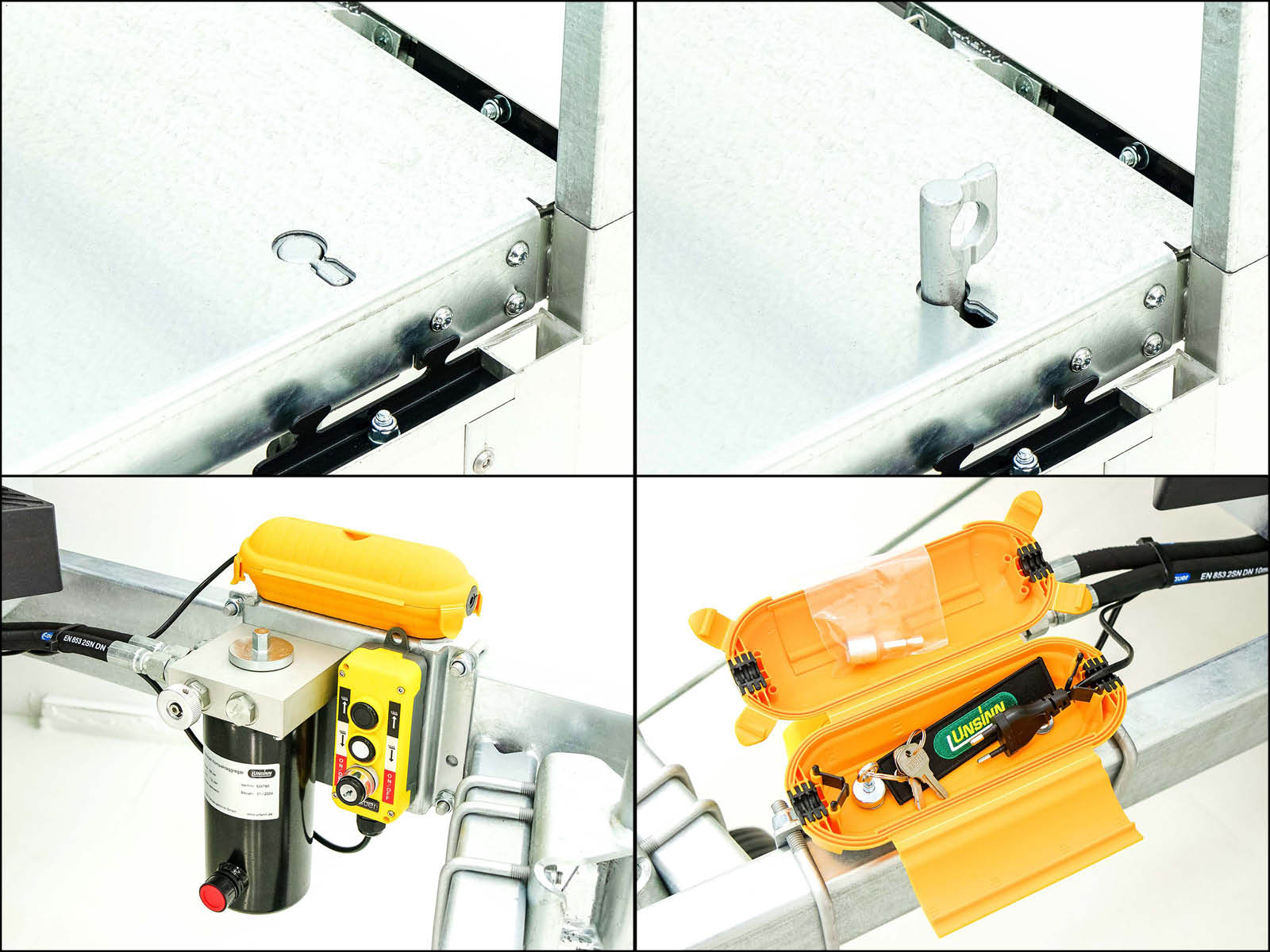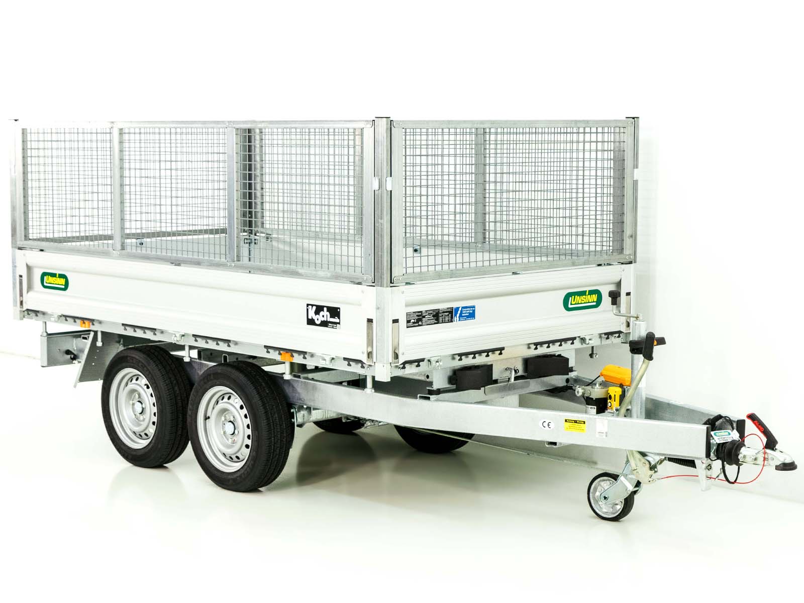 Ein robuster und gut ausgestatteter Heckkipper von Unsinn, geeignet für mittlere bis schwere Lasten mit einer Nutzlast von bis zu 2.040 kg. Ausgestattet mit einer elektrischen Pumpe und Notpumpe für zuverlässigen Betrieb, ist dieser Kipper ideal für vielseitige Anwendungen.