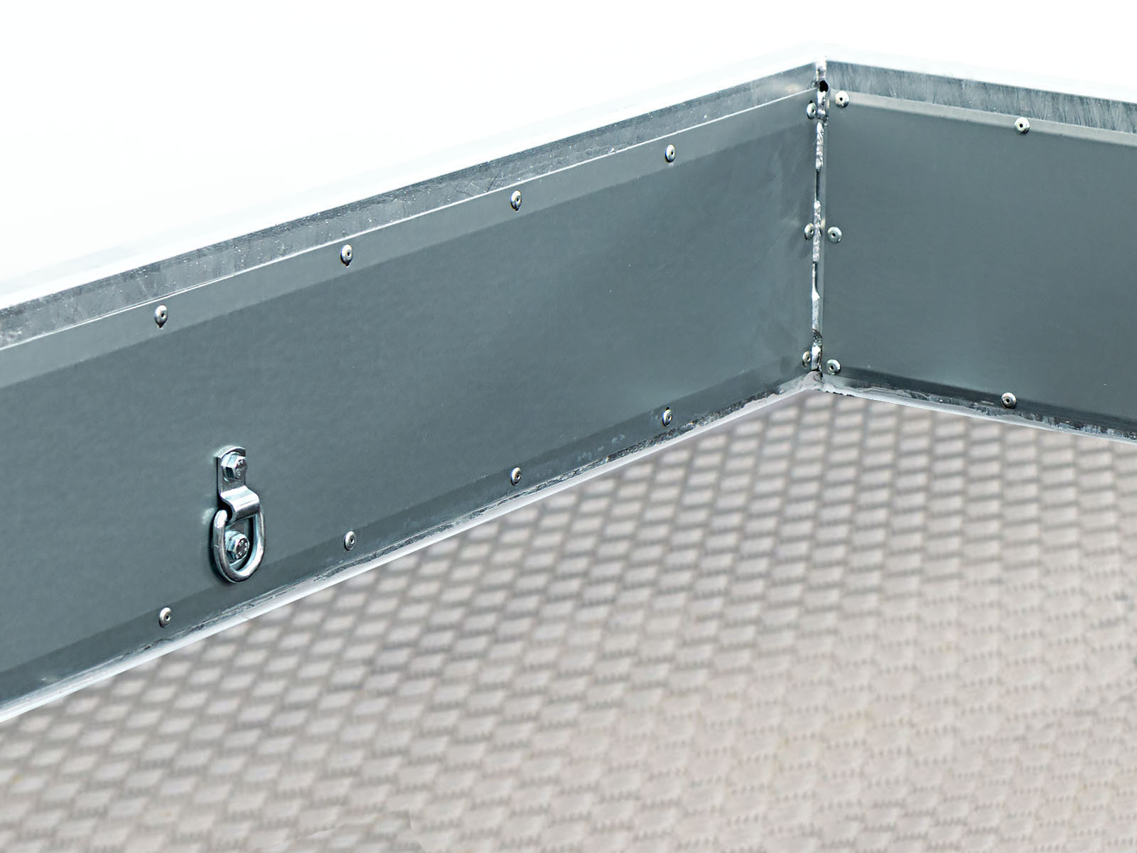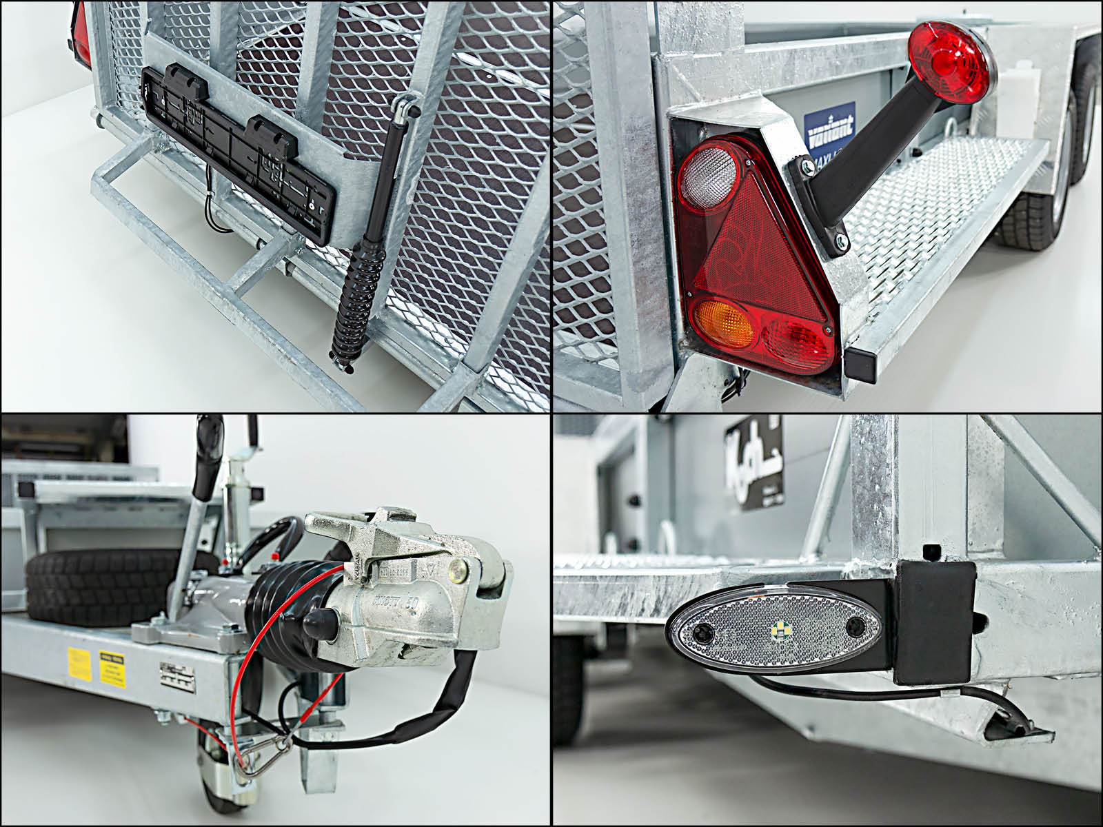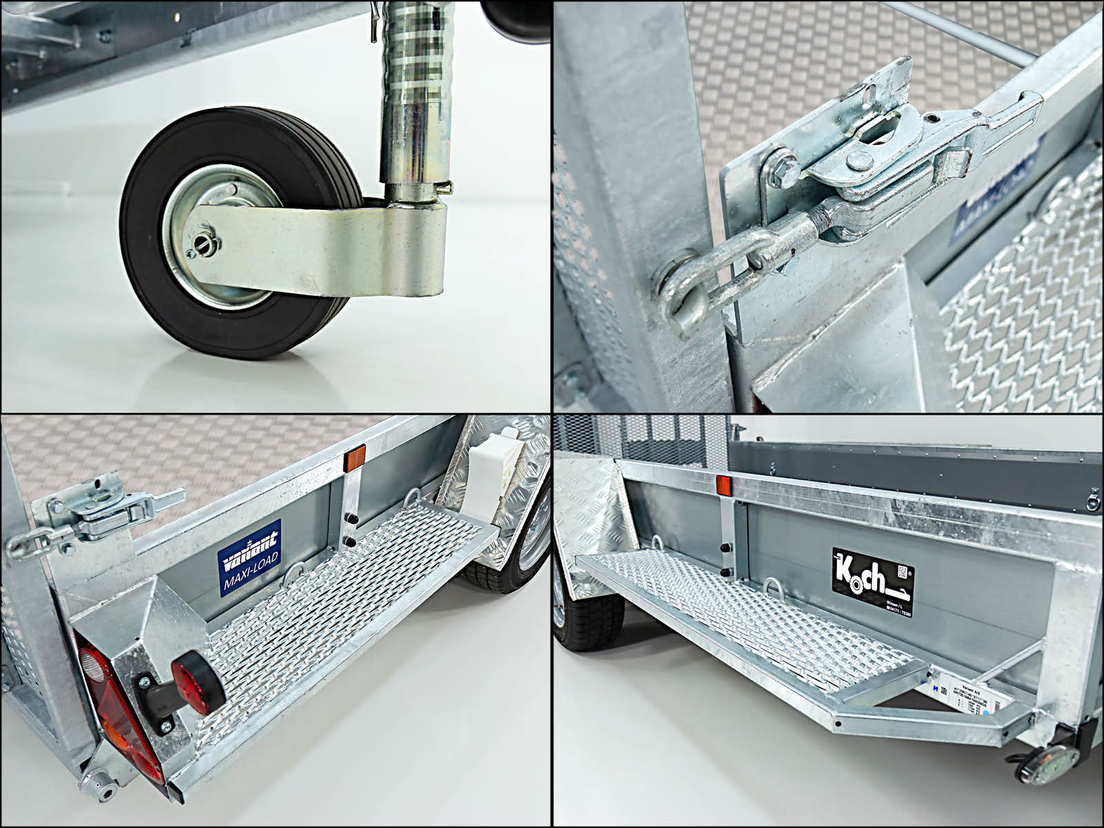 | Besonderheiten | Gitterrohrrahmen, verzinkt; Stahlbordwände, verzinkt; Aluriffelblech Kotflügel, begehbar; Trittstufen seitlich integriert; Beavertail Heck (niedriger Auffahrwinkel); Baggerlöffelablage; 10 Verzurrösen außen integriert, 8 Verzurrösen seitlich; Fahrzeugpapiere inklusive |