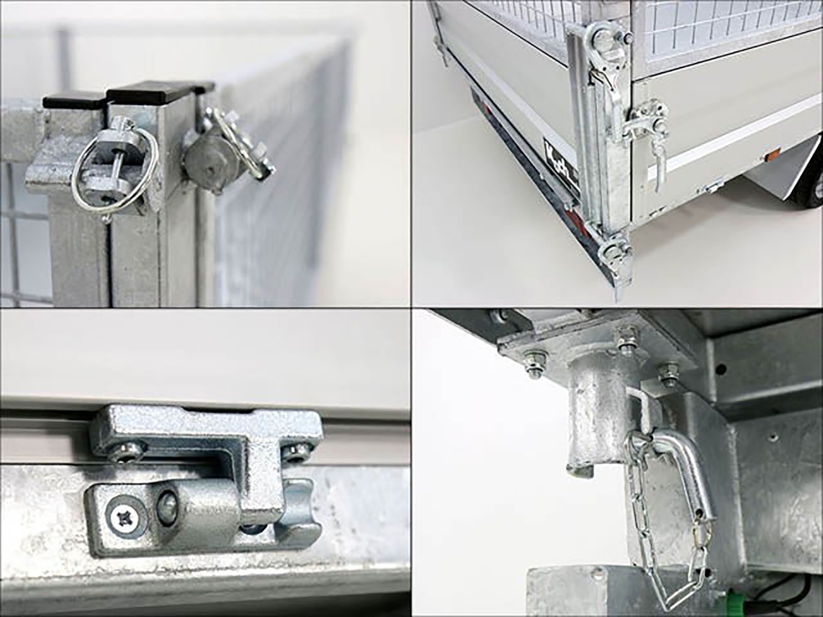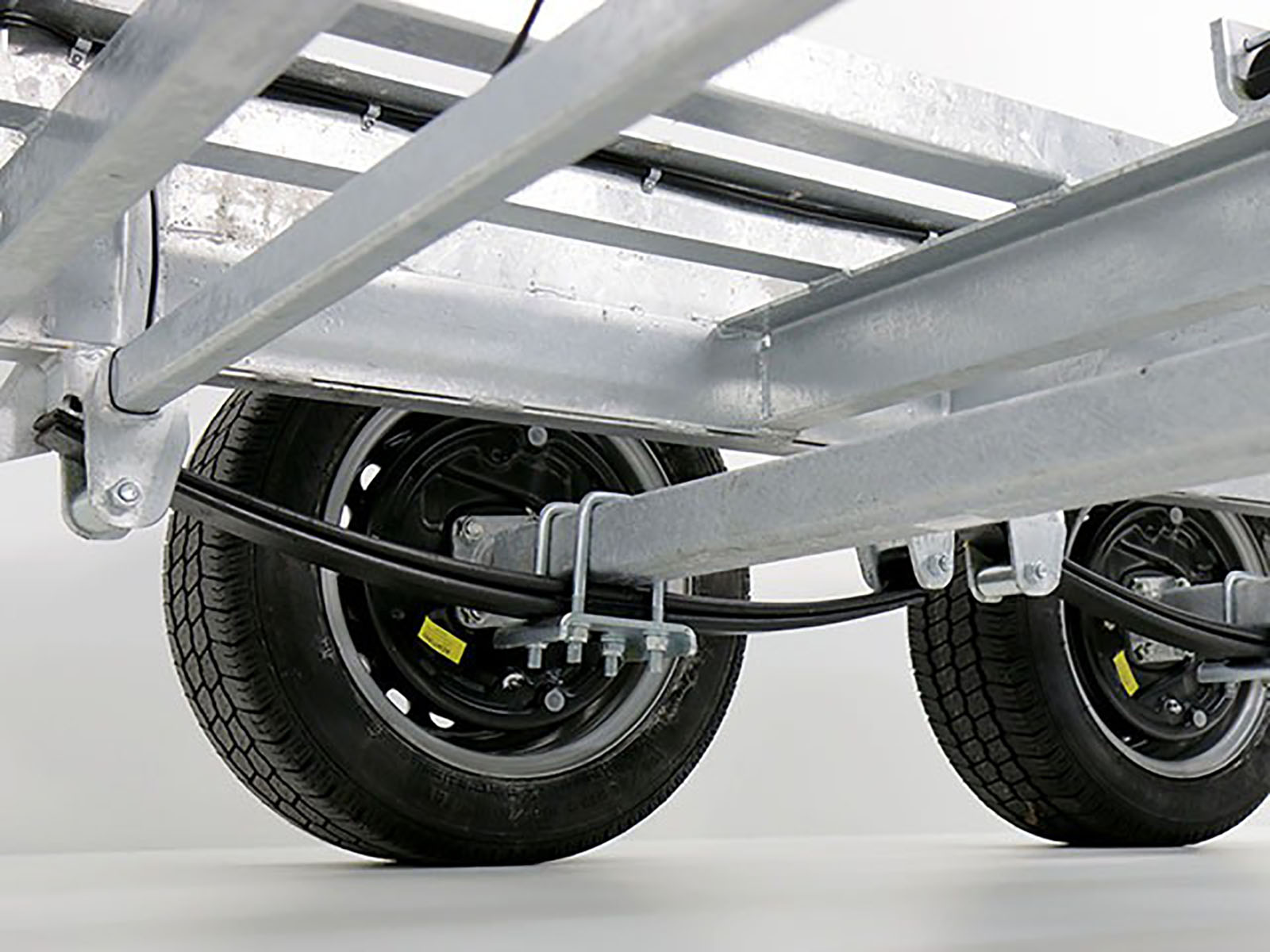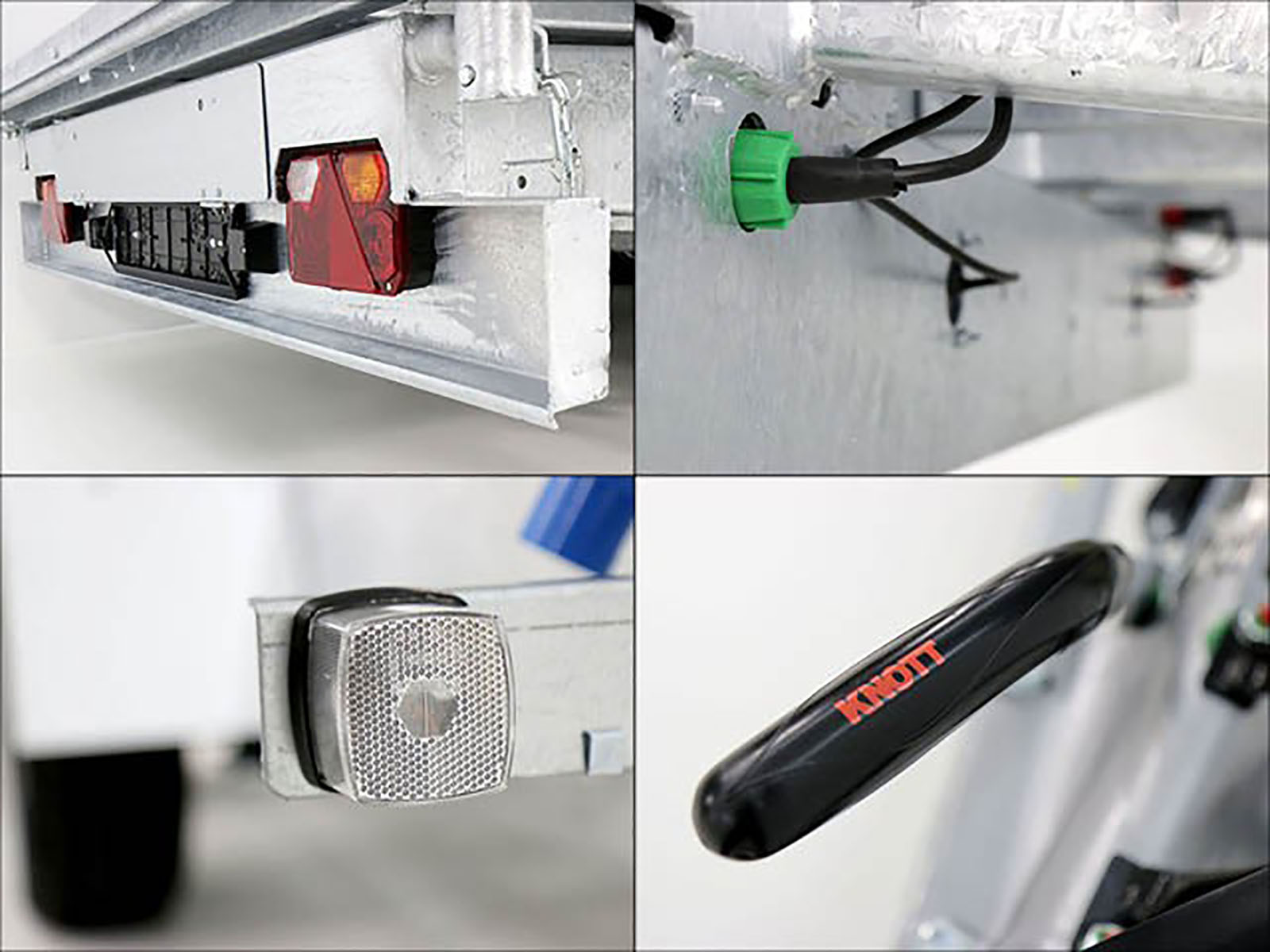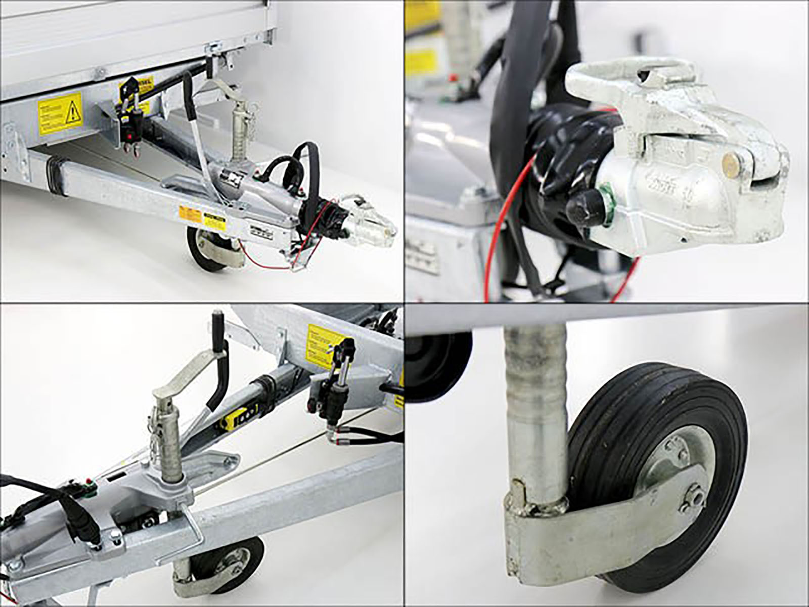 • Fahrwerk : Blattfedern, V-Deichsel avec Zugkugelkupplung, Schwerlaststützrad