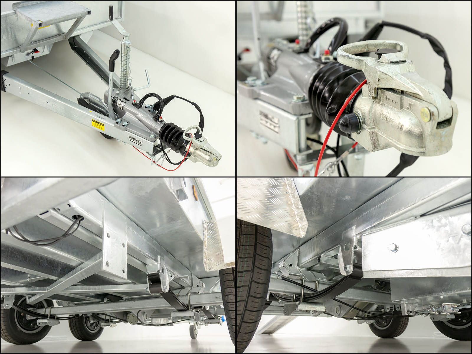 Der robuste Variant Heckkipper bietet höchste Belastbarkeit mit einer Nutzlast von über 2,6 Tonnen. Ideal für den Transport schwerer Maschinen oder Baumaterialien.