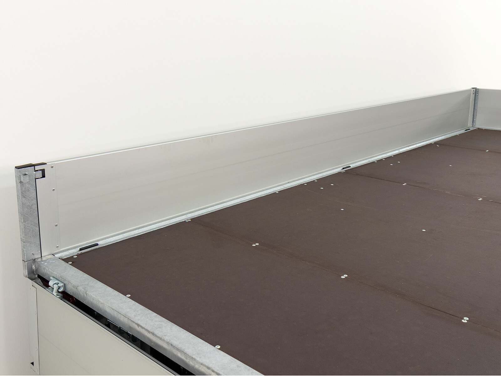 | Bordwände | Aluminium eloxiert, 350 mm hoch, klapp- und abnehmbar |