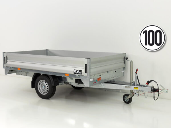 Der Vezeko Hochlader Anhänger DX13.3 zeichnet sich durch ein großzügiges Laderaummaß von 162×317 cm aus und hat eine Zuladung von bis zu 920 kg. Besonders praktisch ist die Staubox unter der Ladefläche sowie die versenkten Bordwandverschlüsse, die für eine einfache und sichere Beladung sorgen. Der Anhänger hat eine Aluminium-Bordwand mit einer Höhe von 350 mm, die klapp- und abnehmbar ist. Die Gummifederachse sorgt für eine wartungsfreie Nutzung, während die Rückfahrautomatik und das Automatik-Stützrad den Anhänger besonders benutzerfreundlich machen. Der Anhänger kann ebenfalls für eine 100 km/h Zulassung ausgerüstet werden (als Zubehör erhältlich). Ideal für den gewerblichen Einsatz oder größere Transporte.