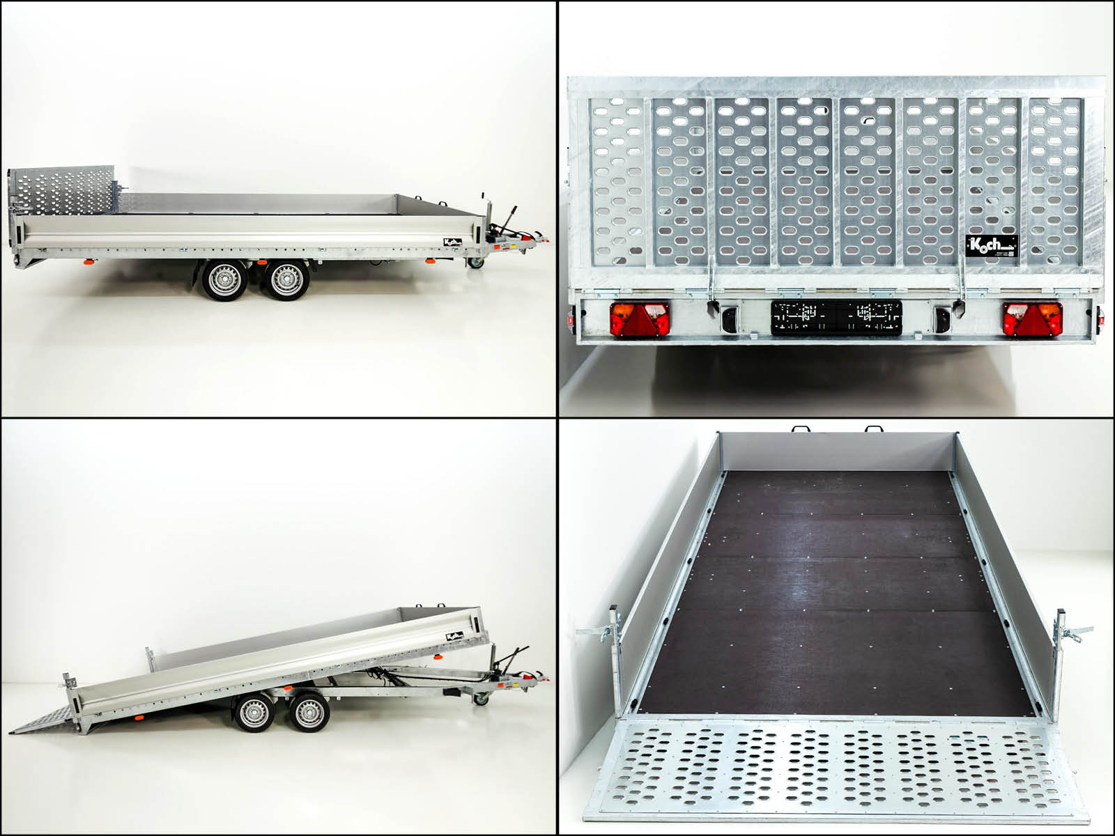 Der Vezeko Hochlader J35.51 MAX bietet eine große Ladefläche von 515 cm Länge und eignet sich für schwere Lasten mit einer maximalen Nutzlast von 2.410 kg. Er ist mit einer kippbaren Ladefläche ausgestattet, die eine Neigung von ca. 11,5° erreicht und mit einer manuellen Pumpe betrieben wird. Mit 10 Zurrbügeln im Bodenrahmenprofil und einer stabilen Aluminium-Bordwand ist dieser Anhänger ideal für den professionellen Einsatz.