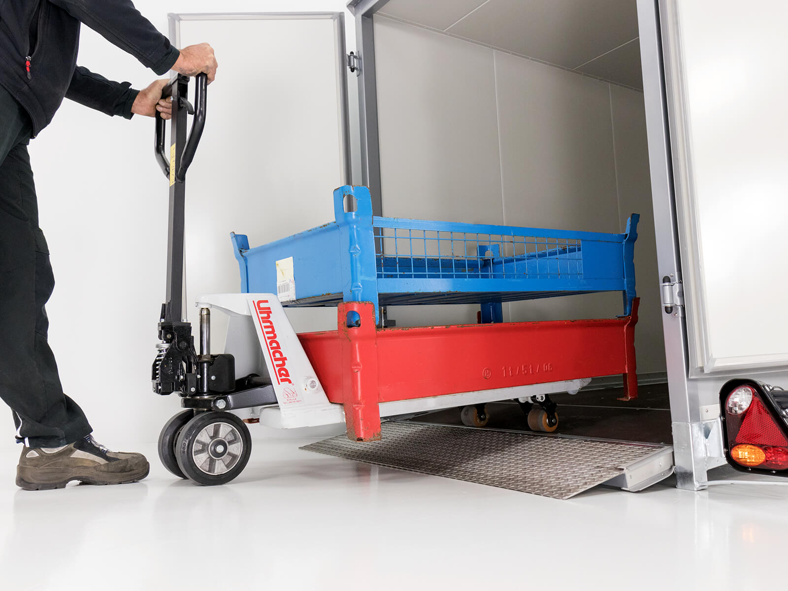 - Ladefläche hydraulisch absenkbar (Handpumpe)