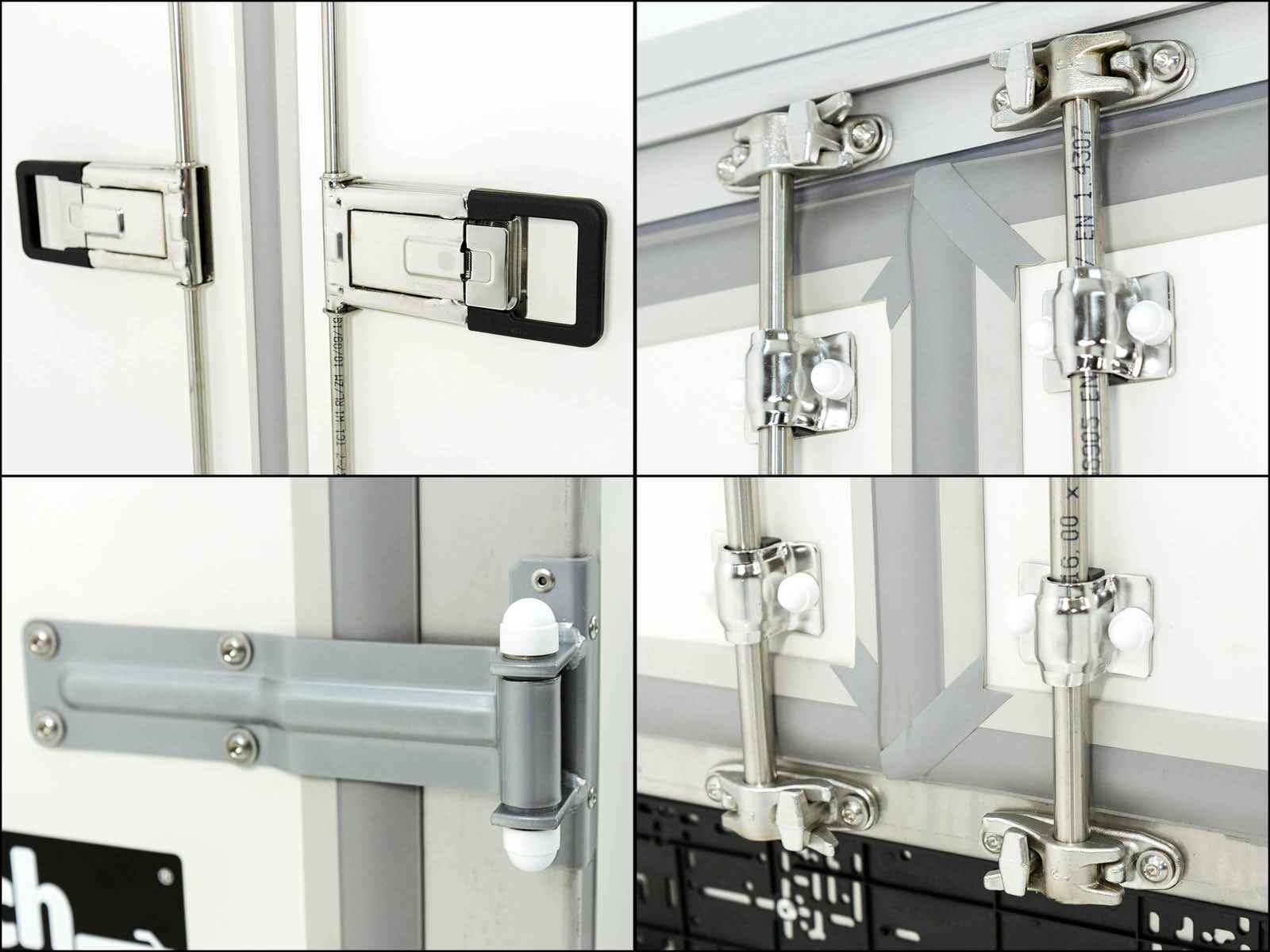 • Türen: Edelstahl-Drehstangenverschluss an Hecktüre, abschließbar