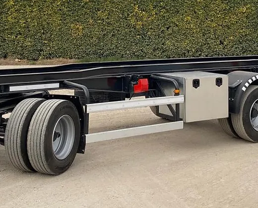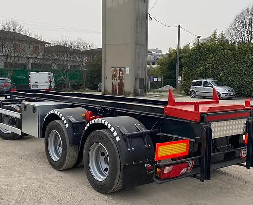 Ein vielseitiger Roll-Off-Trailer von Zorzi, ideal für den Containertransport.